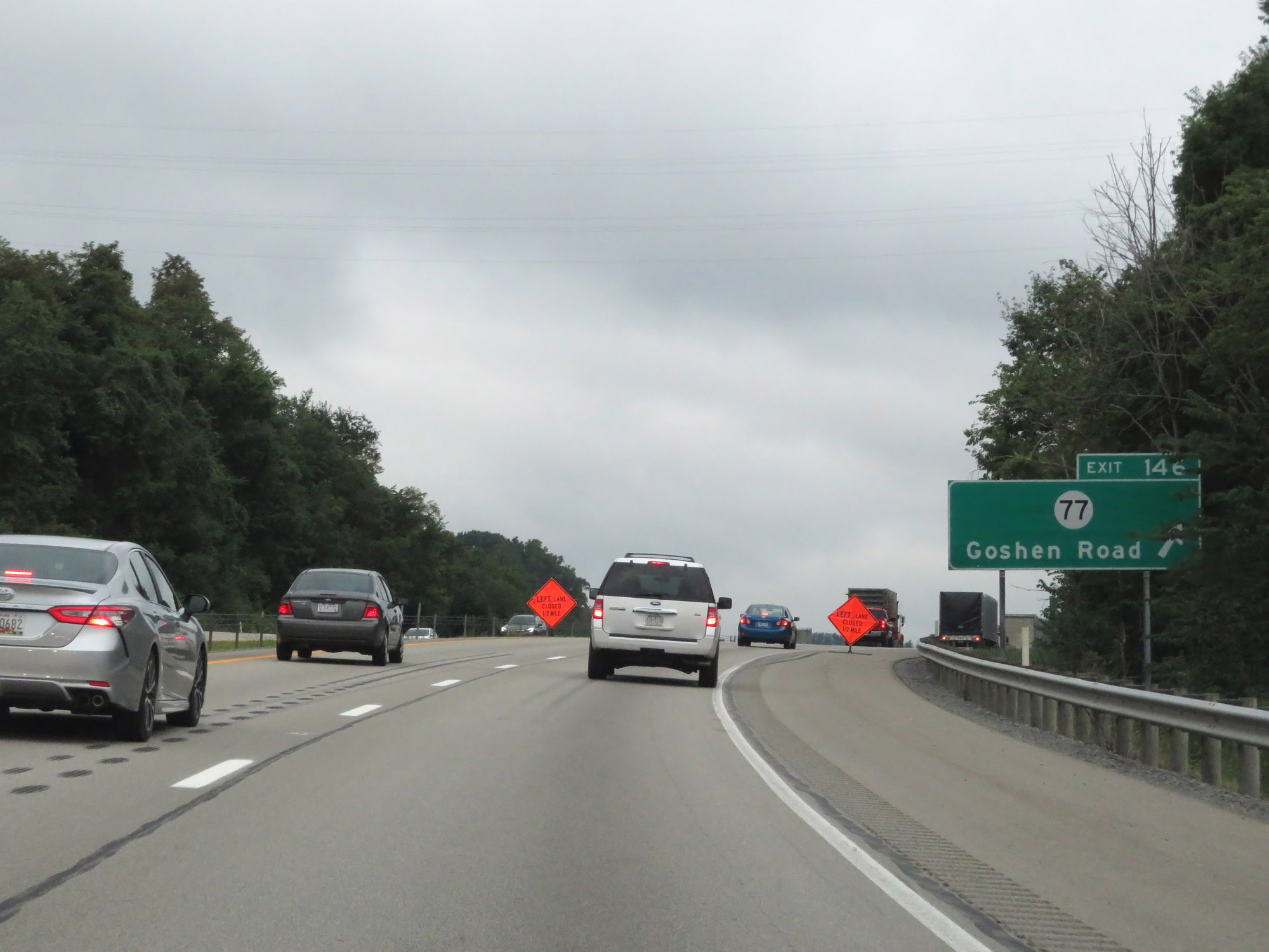 Interstate 79 South at Exit 146: CR 77 - Goshen Road (Photo taken 8/9/19). |