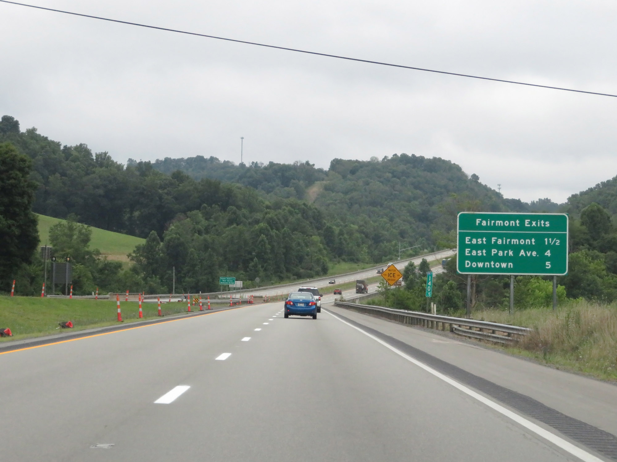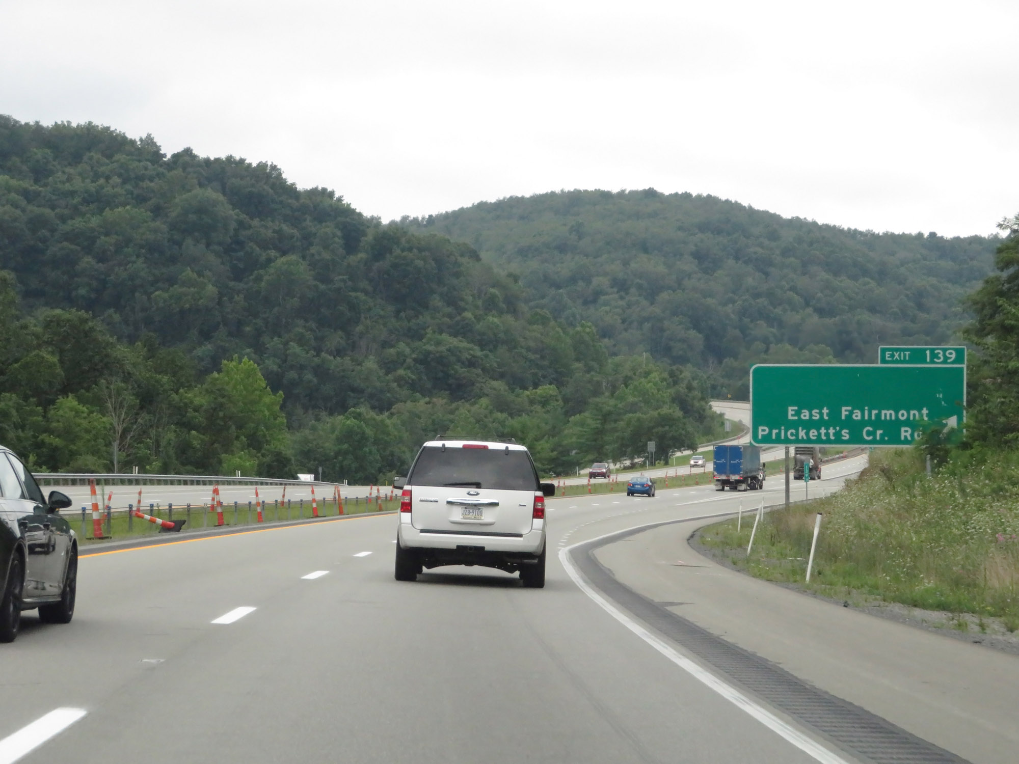 Interstate 79 South at Exit 139: East Fairmont / Prickett's Creek Rd (Photo taken 8/9/19). |