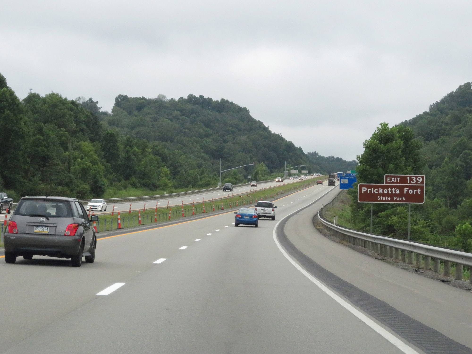 Take Exit 139 to Prickett's Fort State Park. (Photo taken 8/9/19). |