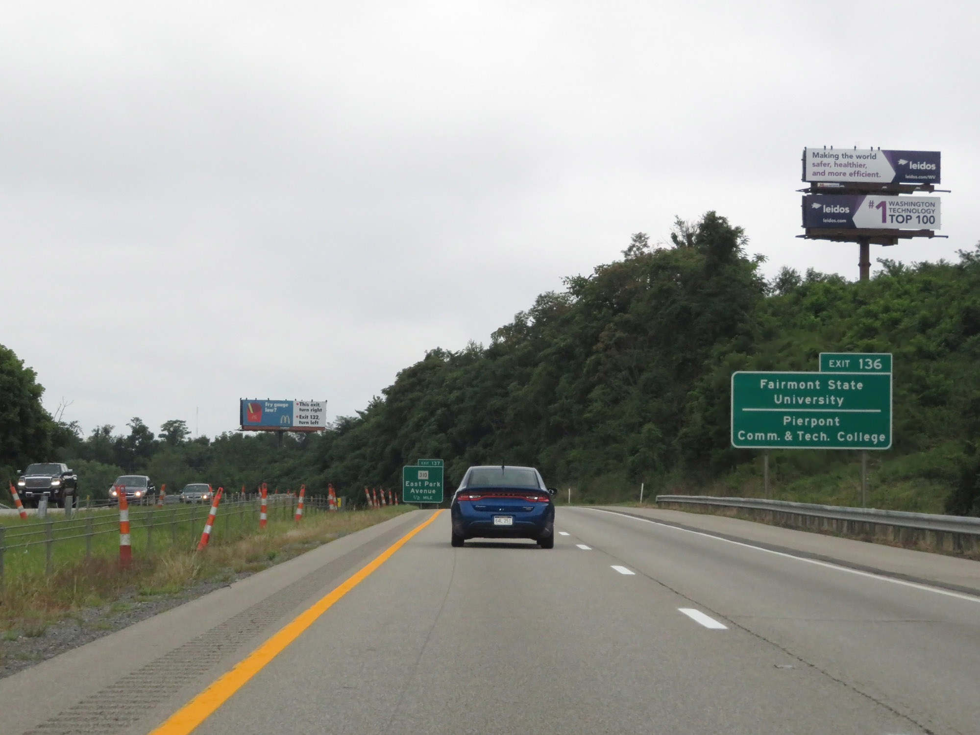 Take Exit 136 to Fairmont State University and Pierpont Community & Tech College. (Photo taken 8/9/19). |