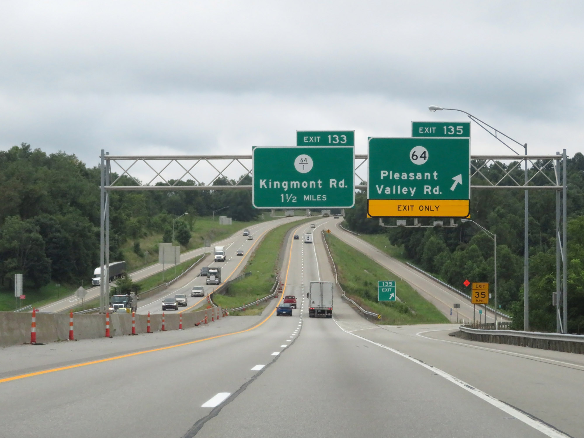 Interstate 79 South at Exit 135: CR 64 - Pleasant Valley Rd (Photo taken 8/9/19). |
