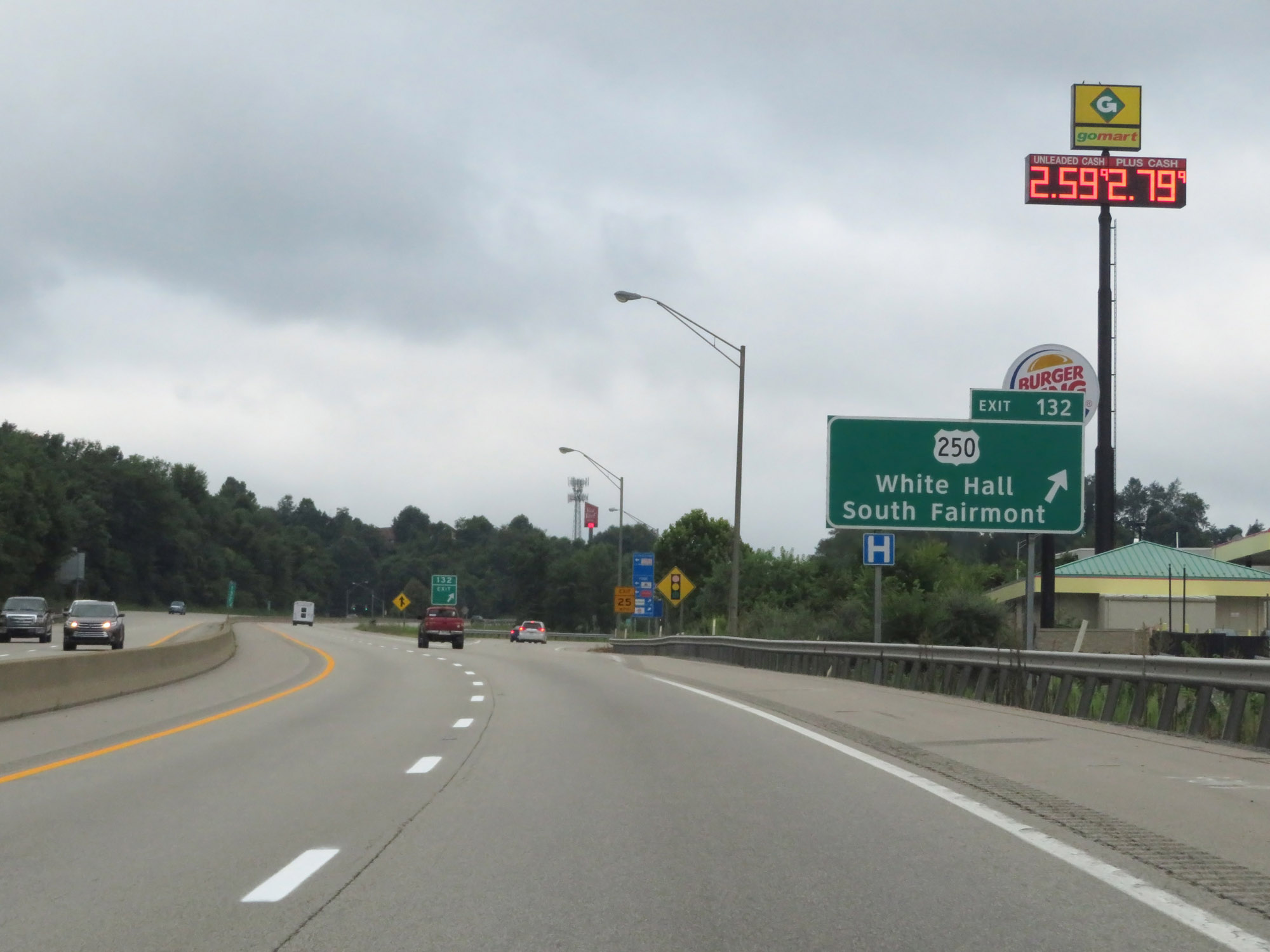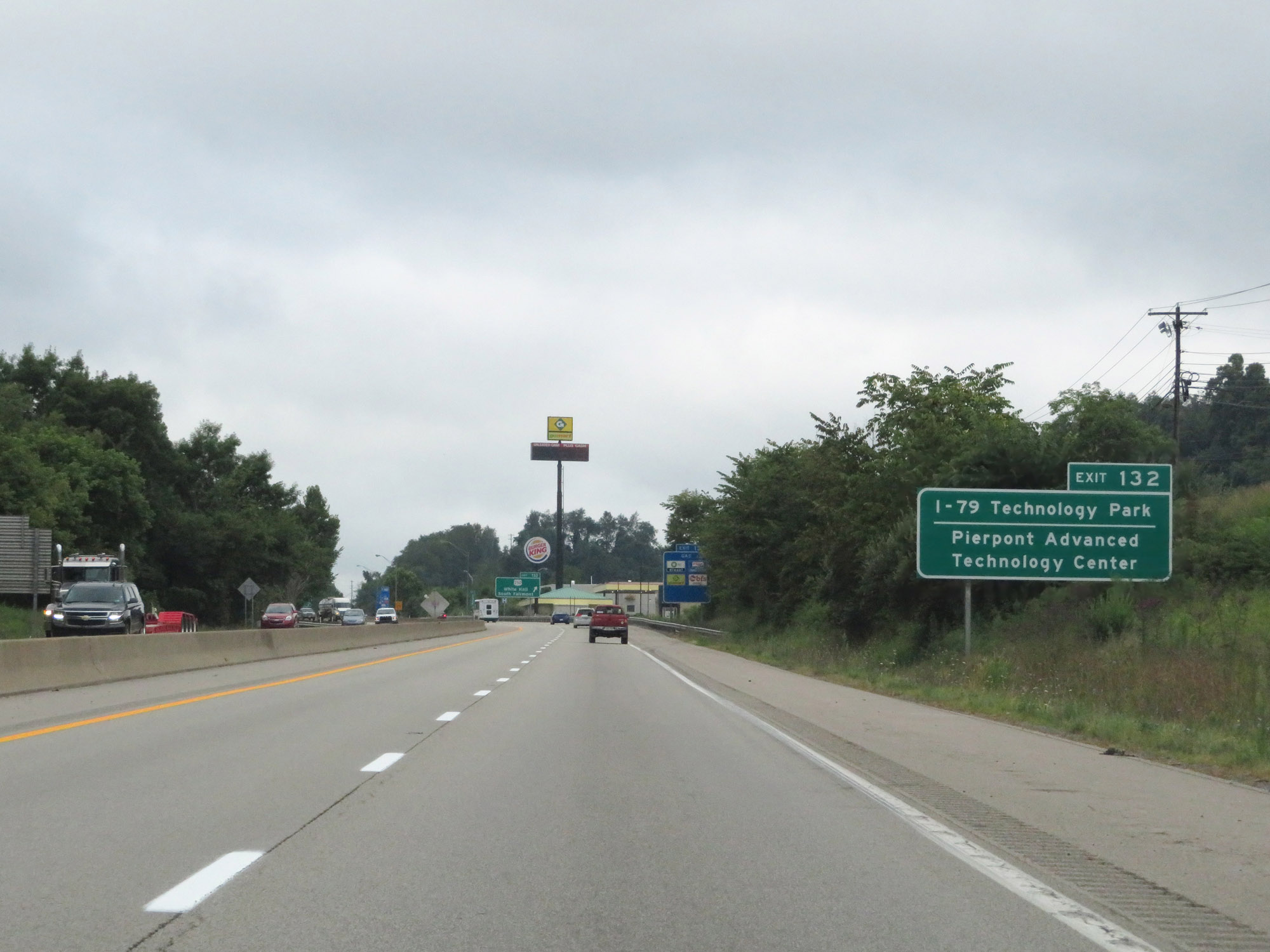 Interstate 79 South at Exit 132: US 250 - White Hall / South Fairmont (Photo taken 8/9/19). |