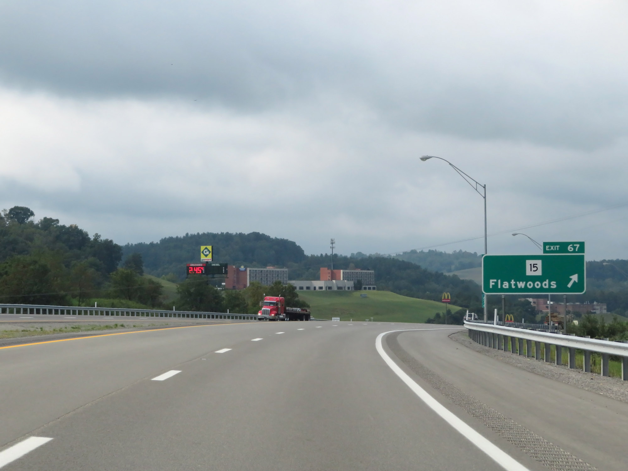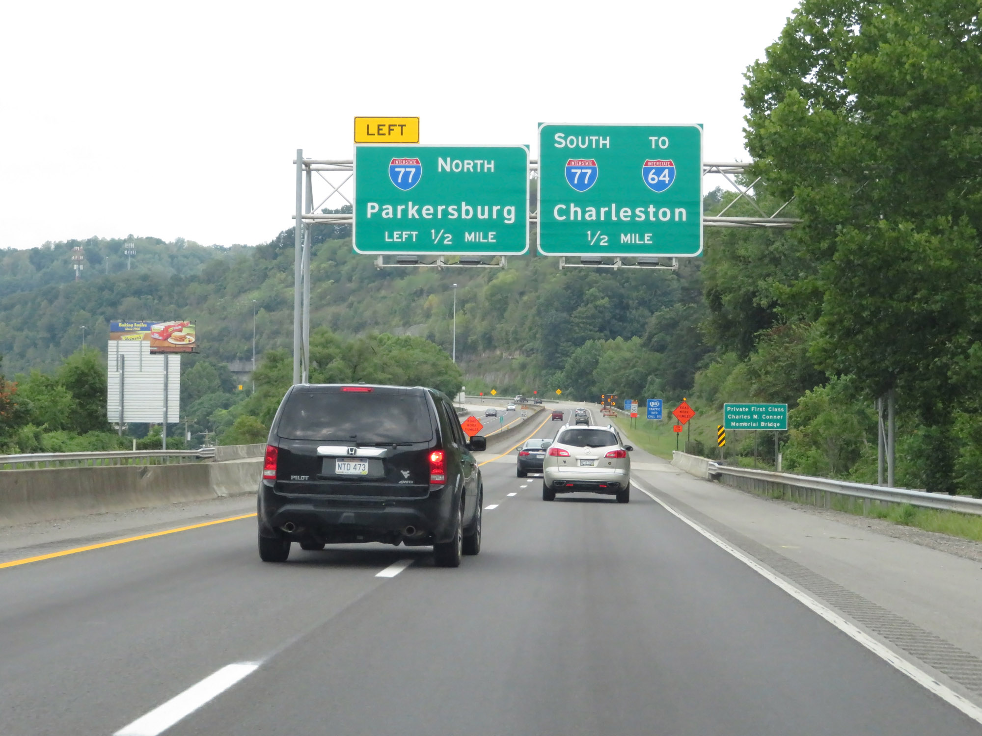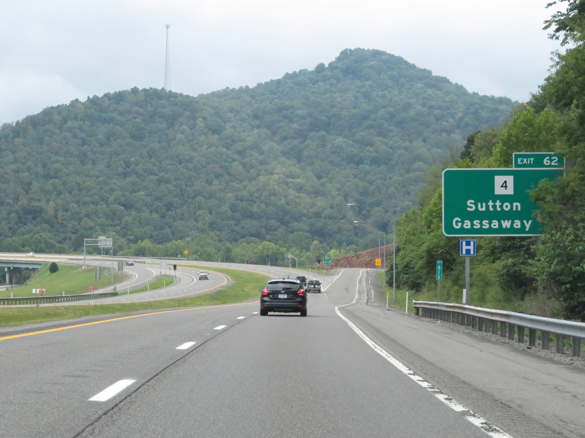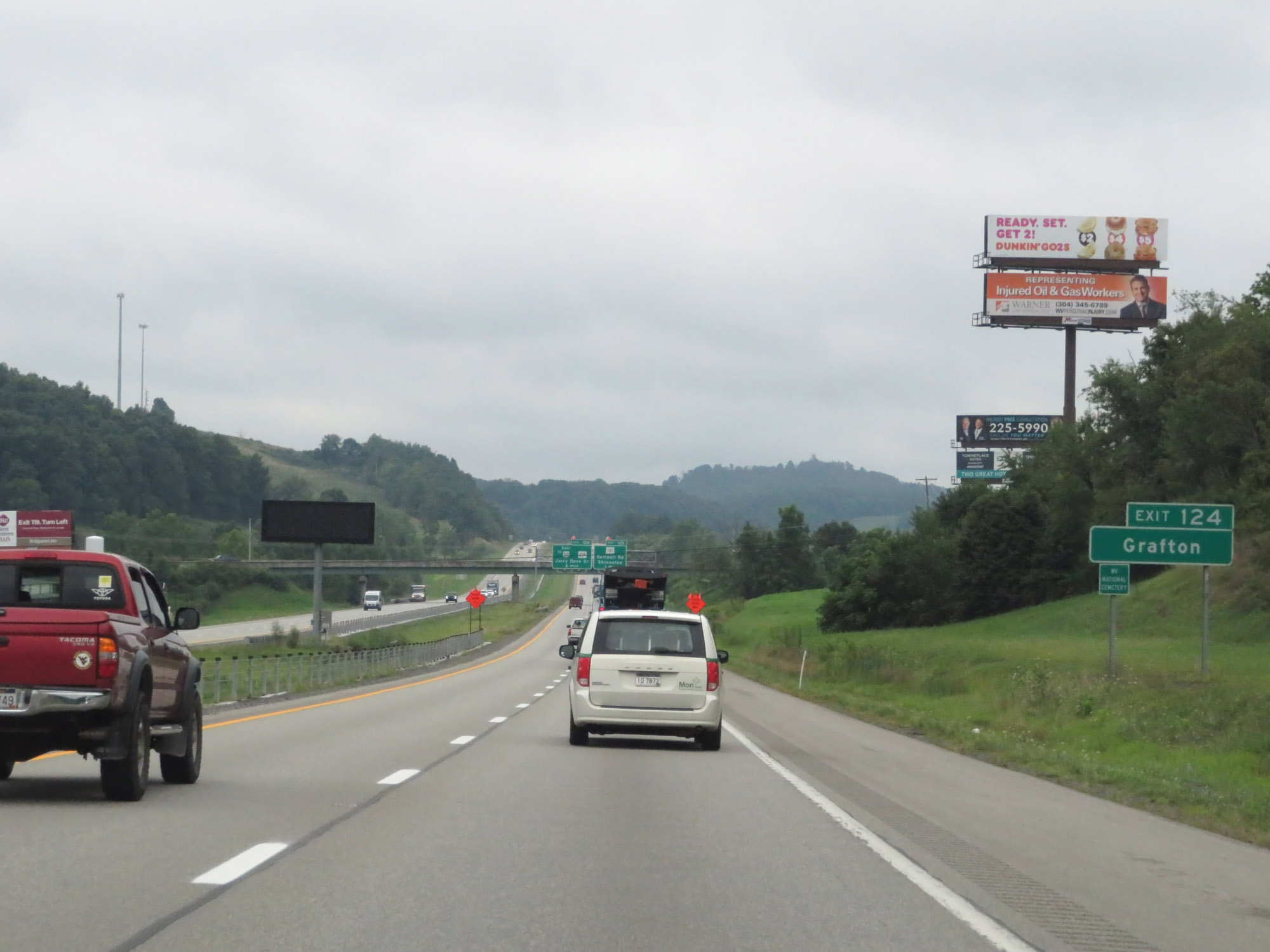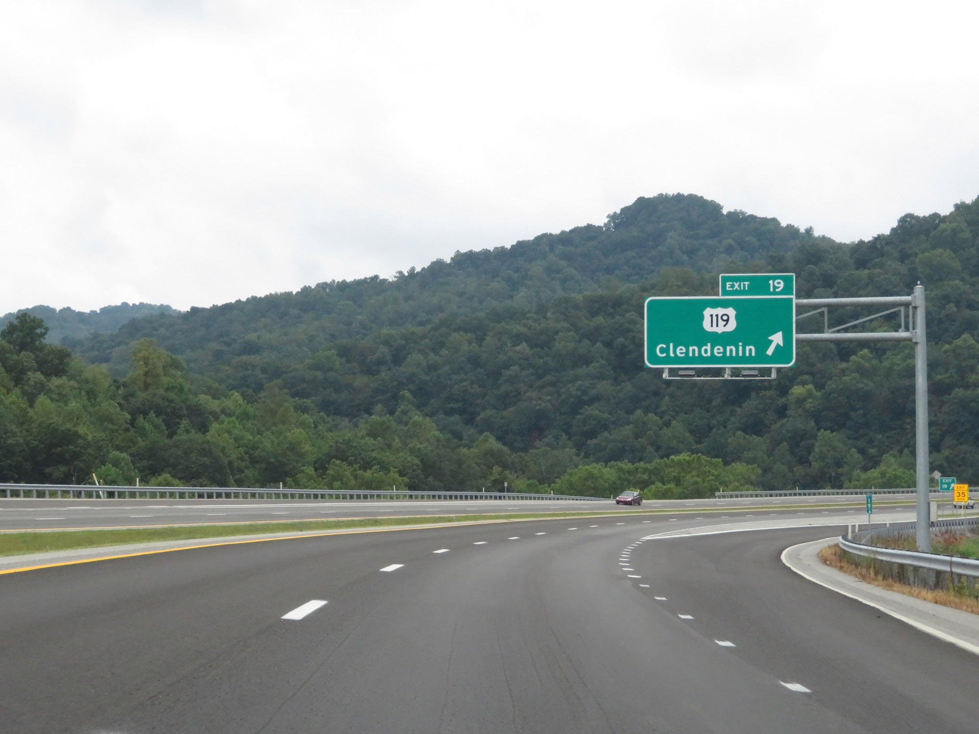 Use Exit 124 (4 miles ahead) to North Central West Virginia Airport. (Photo taken 8/9/19). |