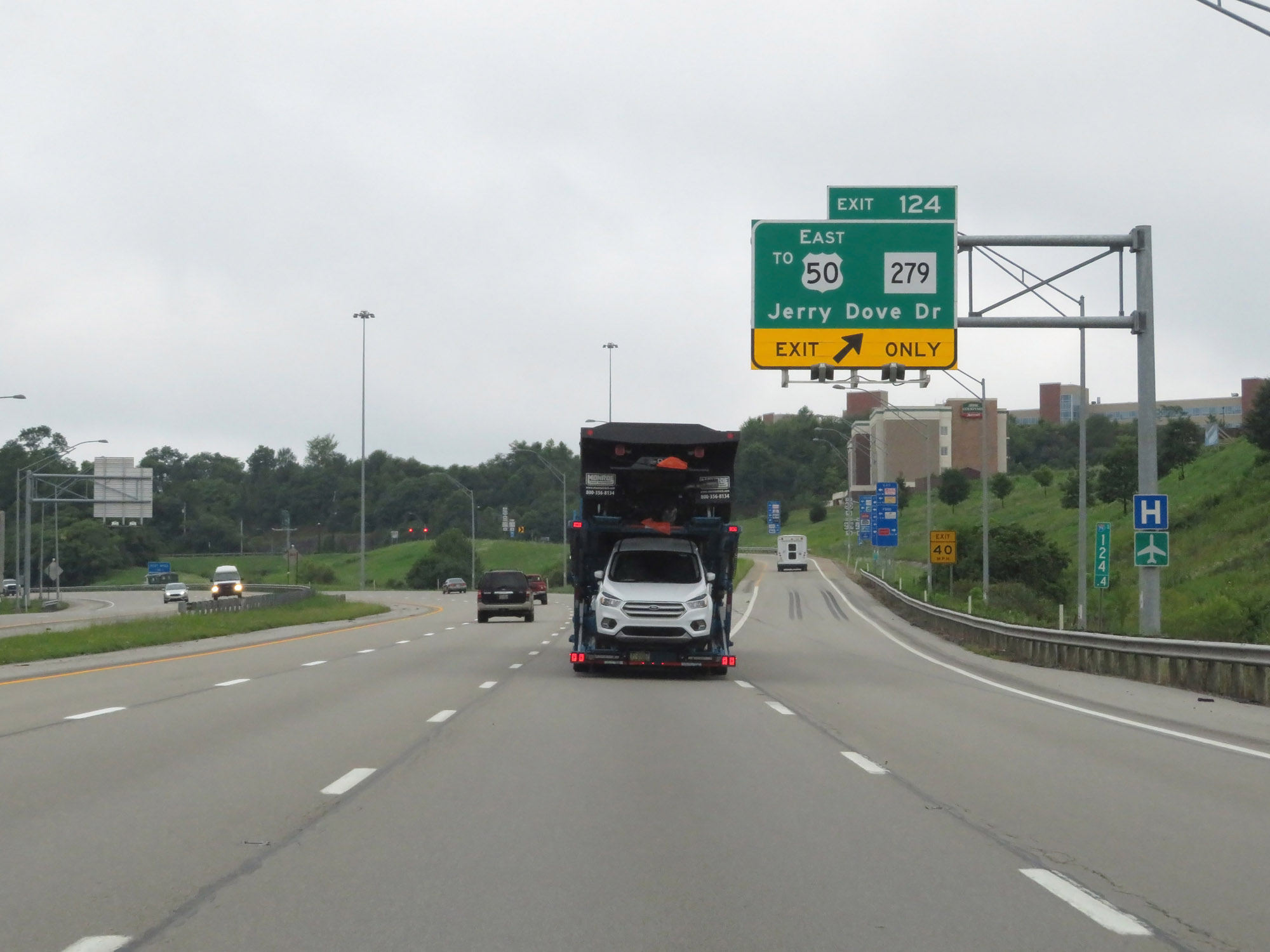 Interstate 79 South at Exit 124: WV 279 / To US 50 East - Jerry Dove Dr (Photo taken 8/9/19). |