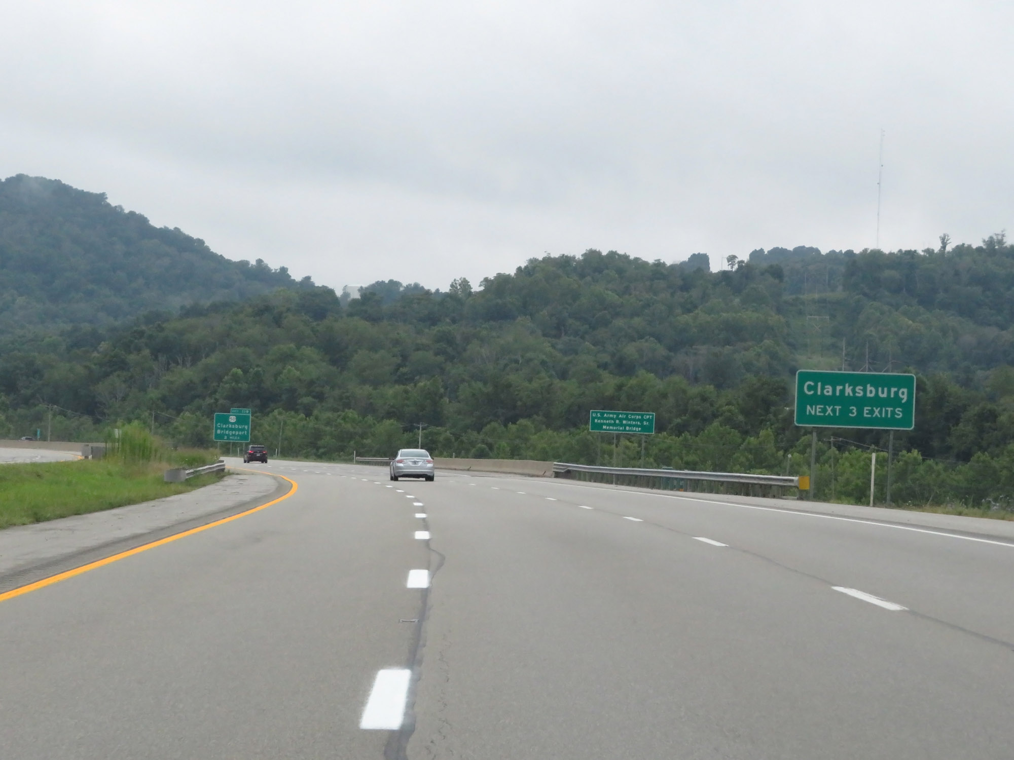 To the south of Fairmont, Interstate 79 South enters Harrison County. (Photo taken 8/9/19). |