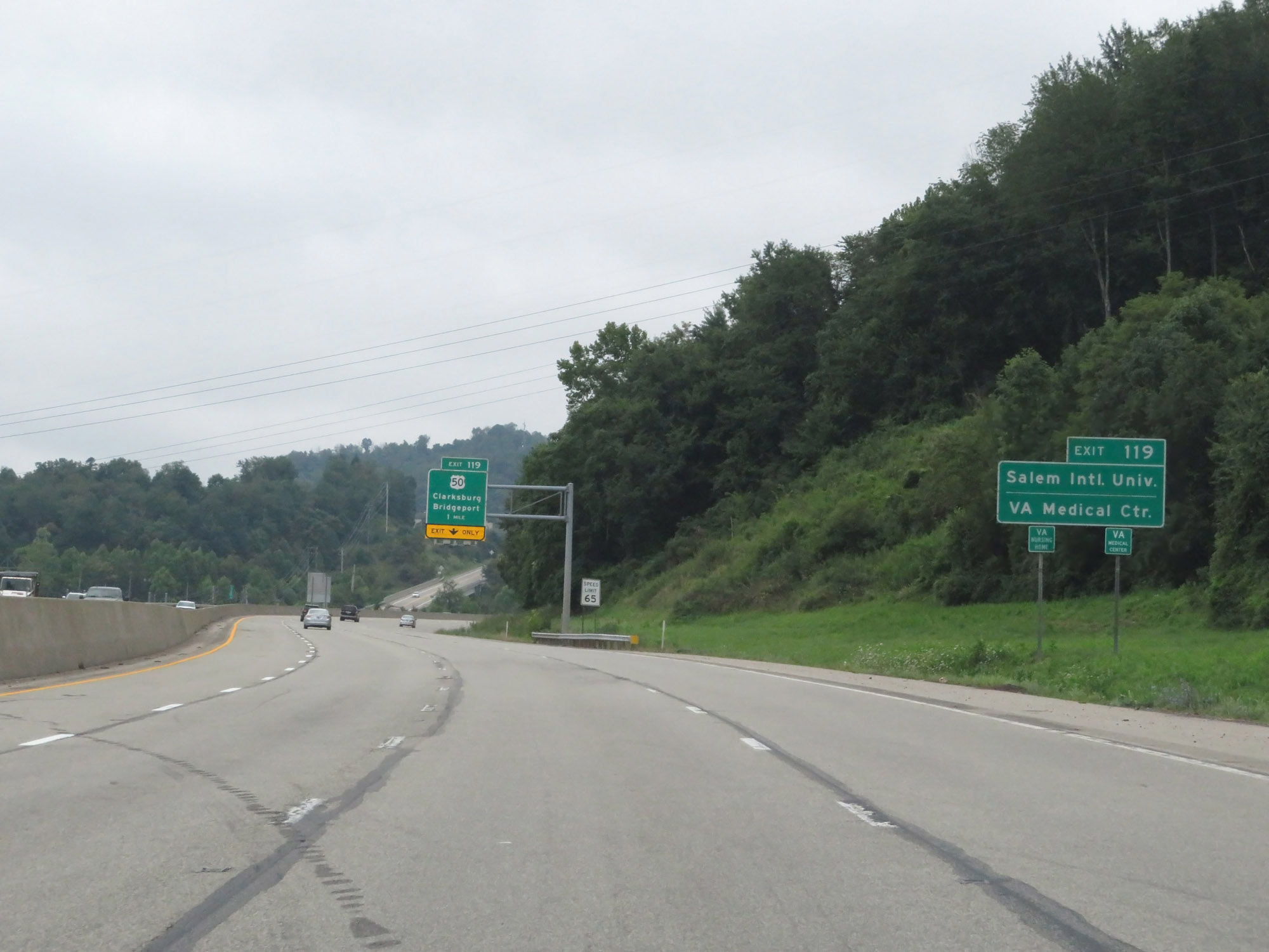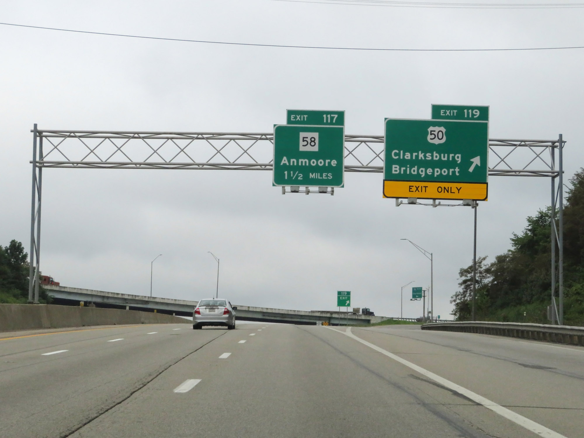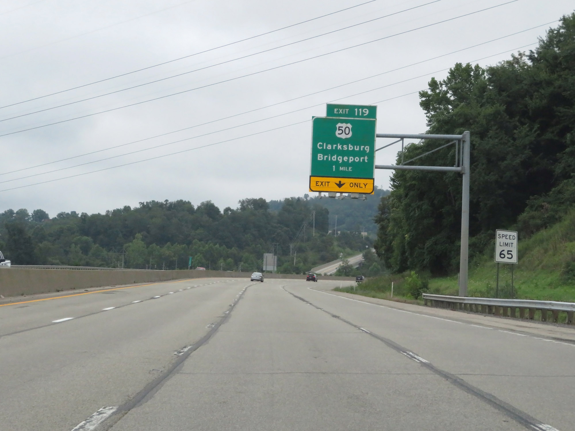Interstate 79 South at Exit 119: US 50 - Clarksburg / Bridgeport (Photo taken 8/9/19). |