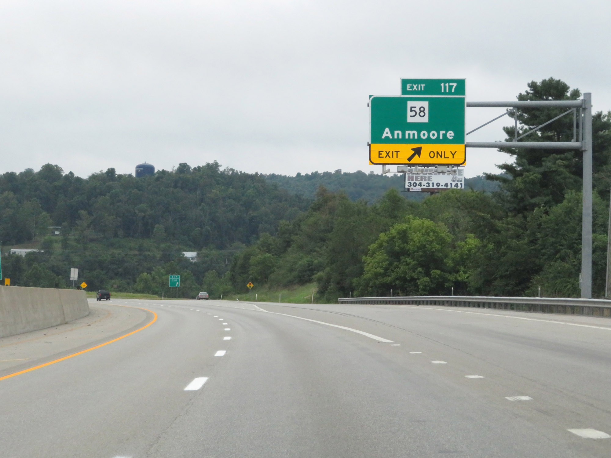 Interstate 79 South at Exit 117: WV 58 - Anmoore (Photo taken 8/9/19). |