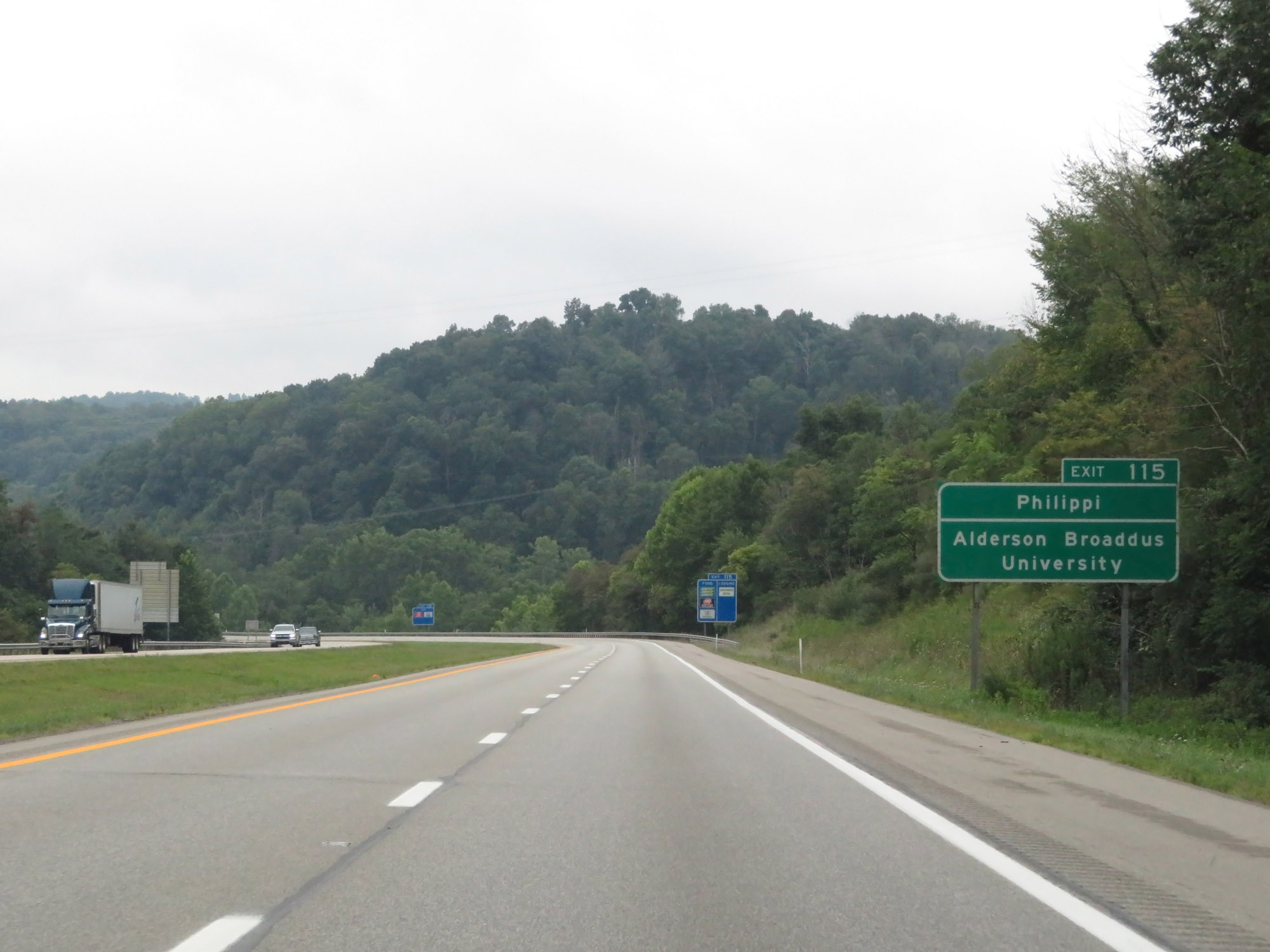 Take Exit 115 to Philippi and Alderson Broaddus University. (Photo taken 8/9/19). |