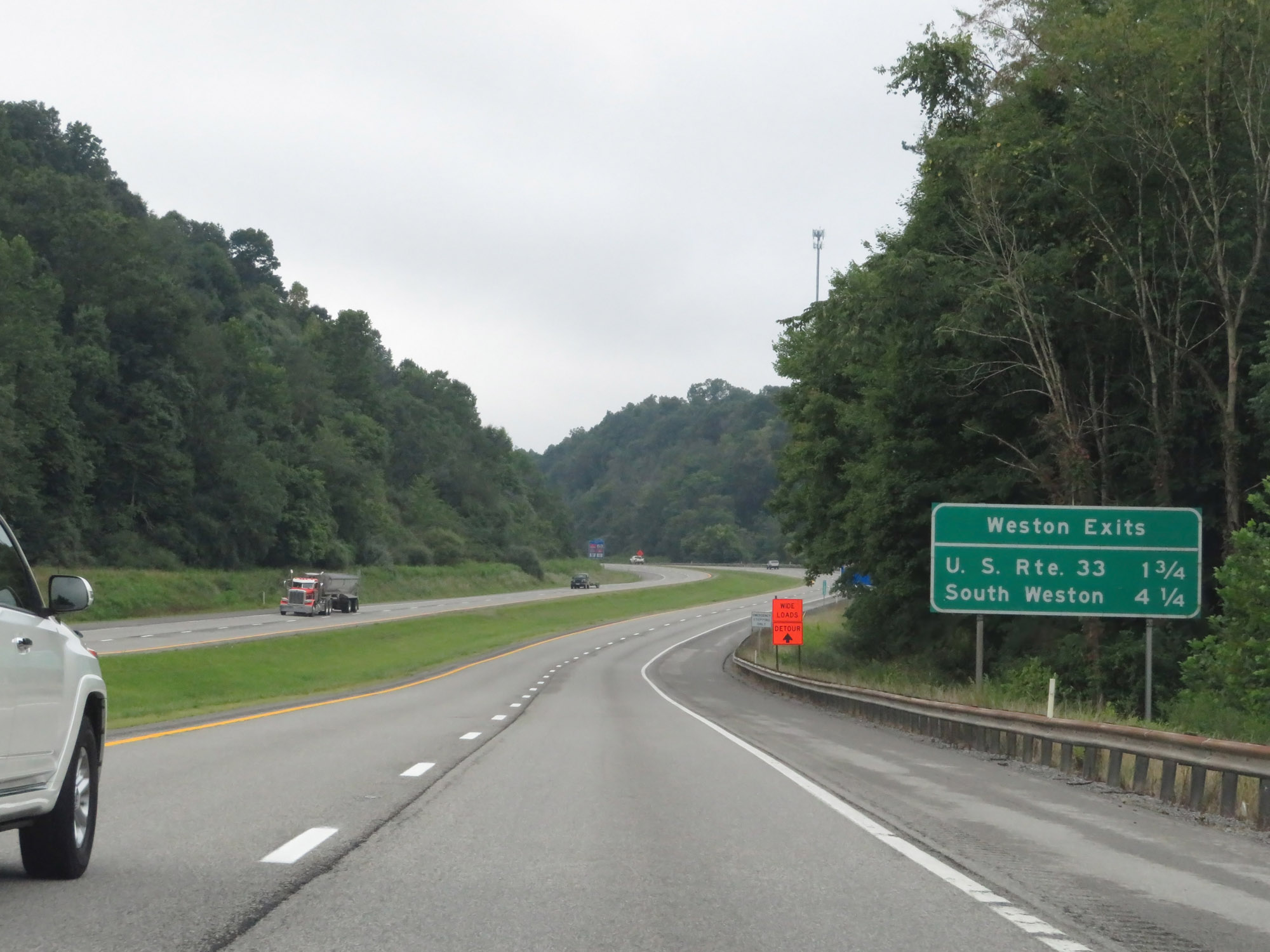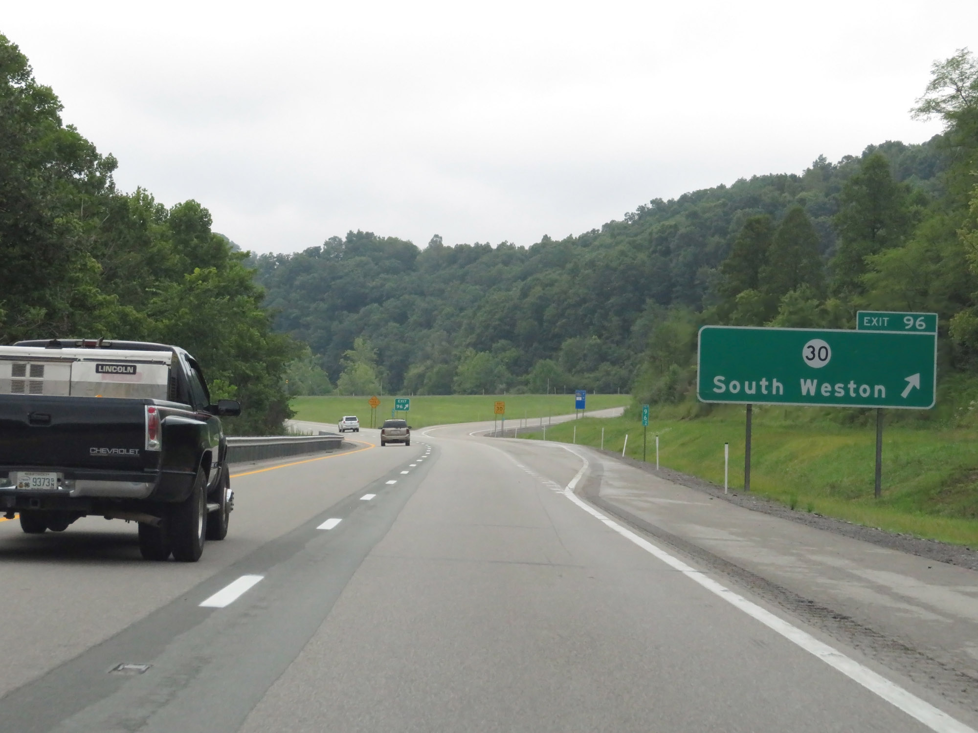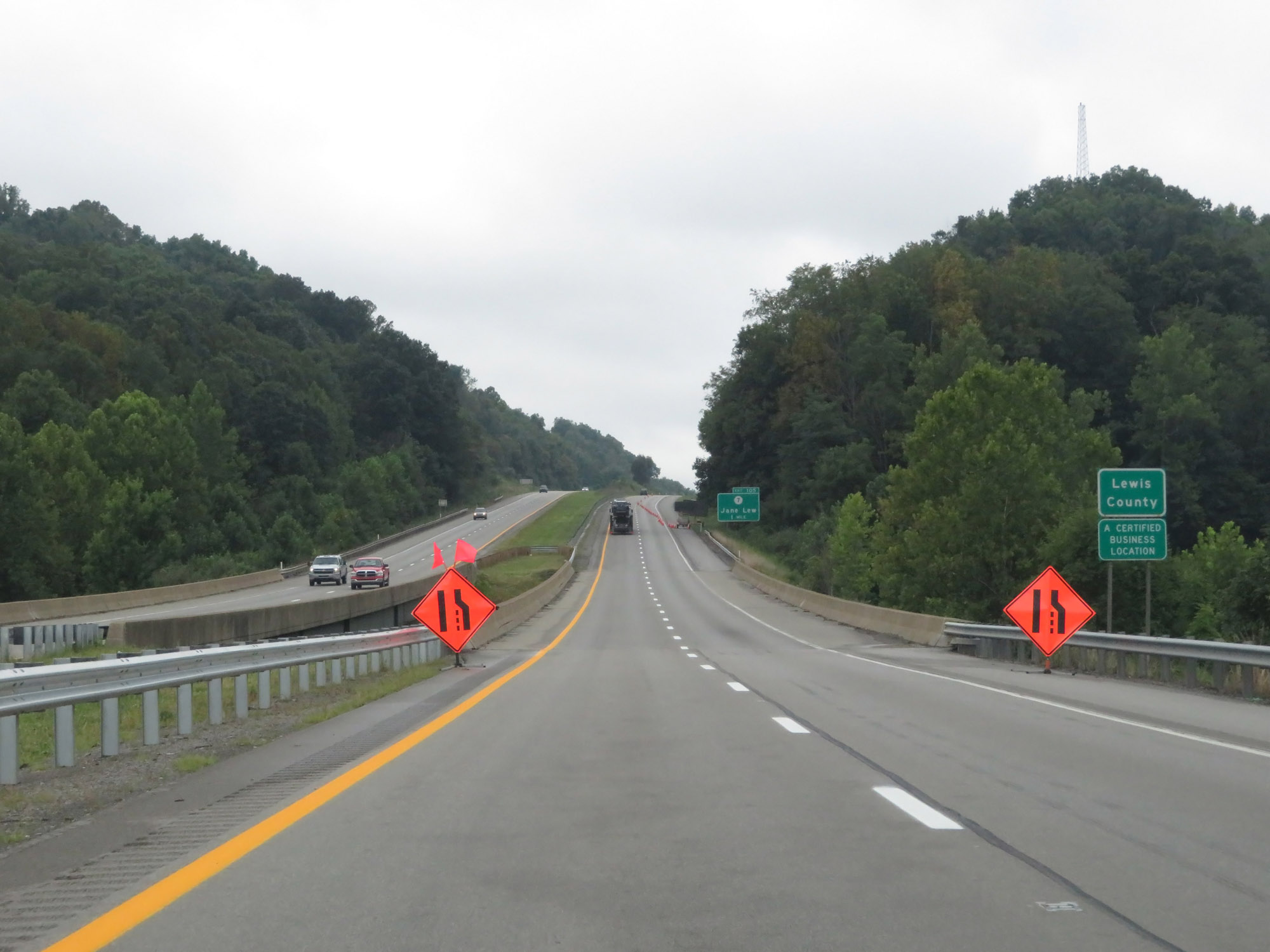 Just before Exit 105, Interstate 79 South enters Lewis County. (Photo taken 8/9/19). |