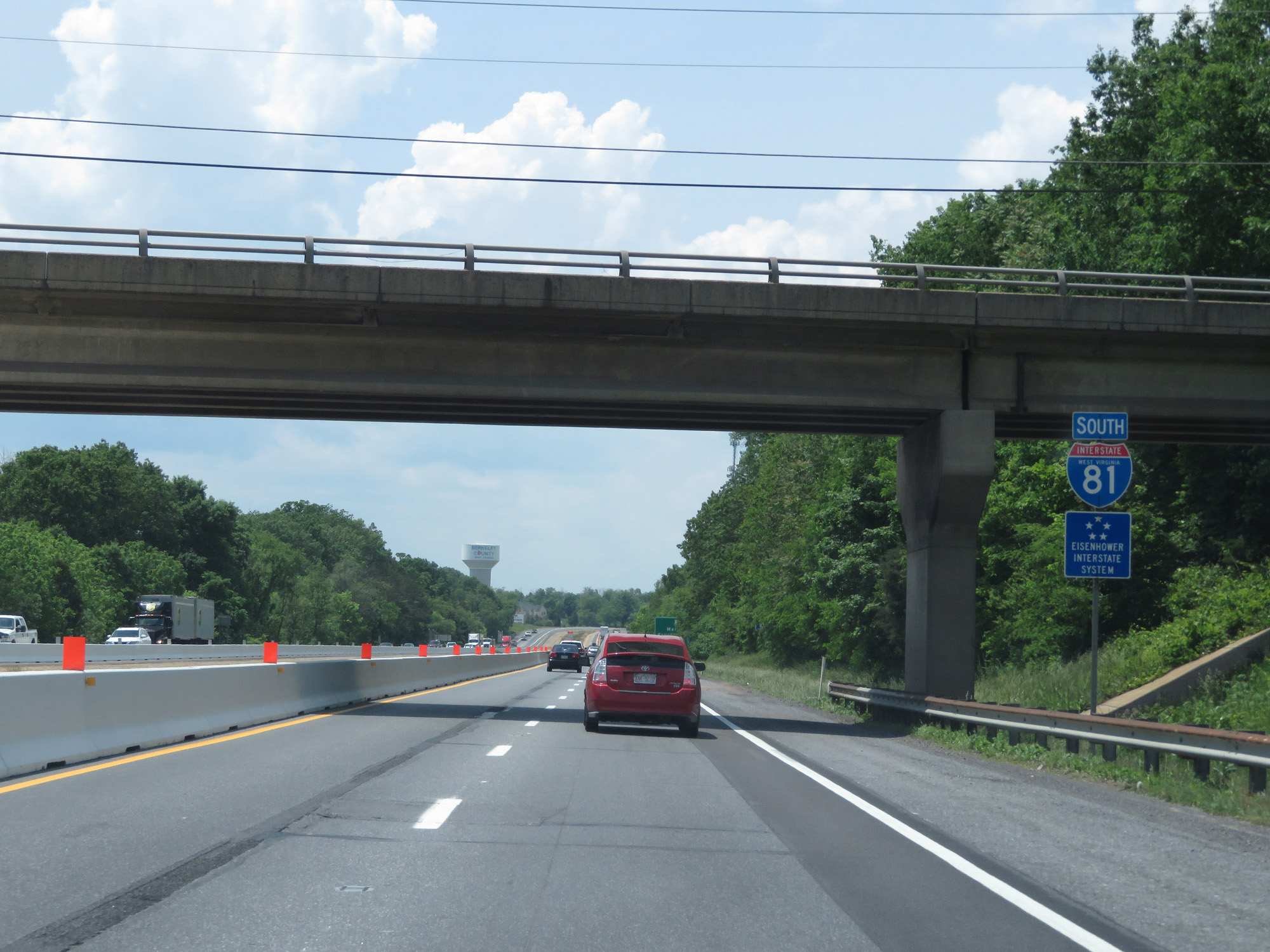 State-named Interstate 81 South reassurance shield. (Photo taken 5/19/17). |