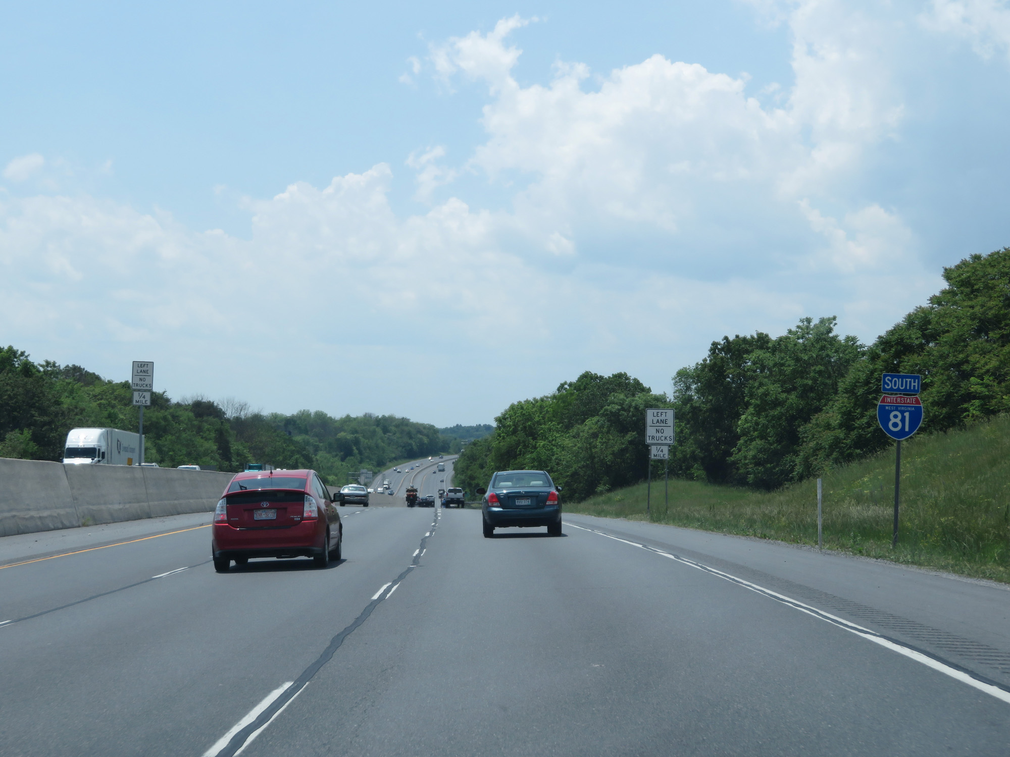 Interstate 81 South at mile marker 10. (Photo taken 5/19/17). |
