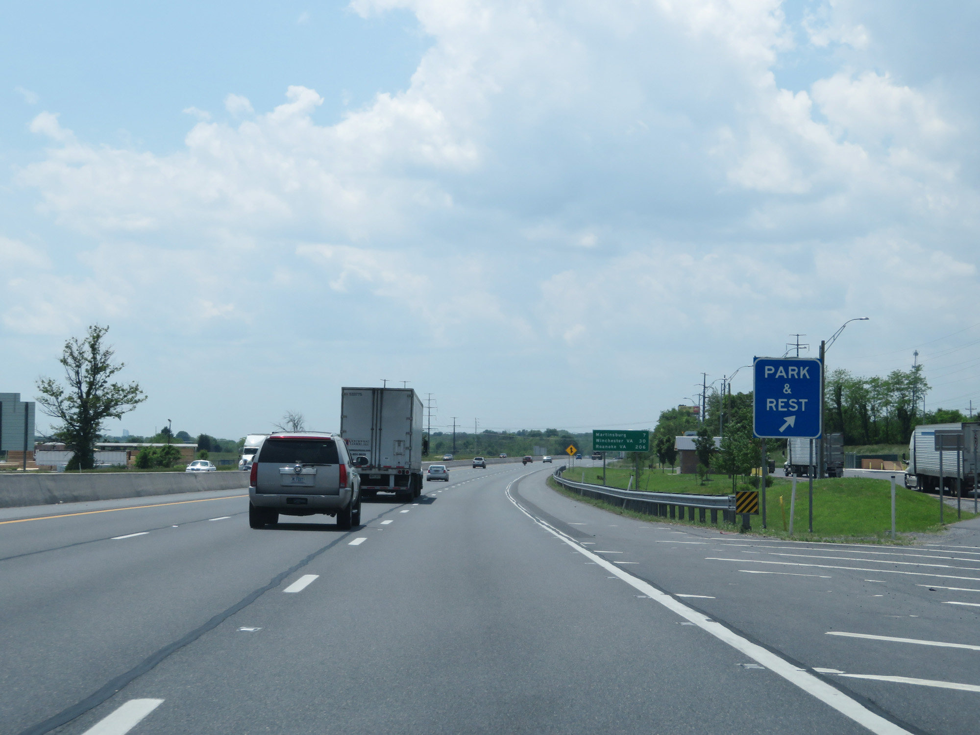 Interstate 81 South at the West Virginia Welcome Center / Rest Area / Weigh Station, located at mile marker 25.5. (Photo taken 5/19/17). |