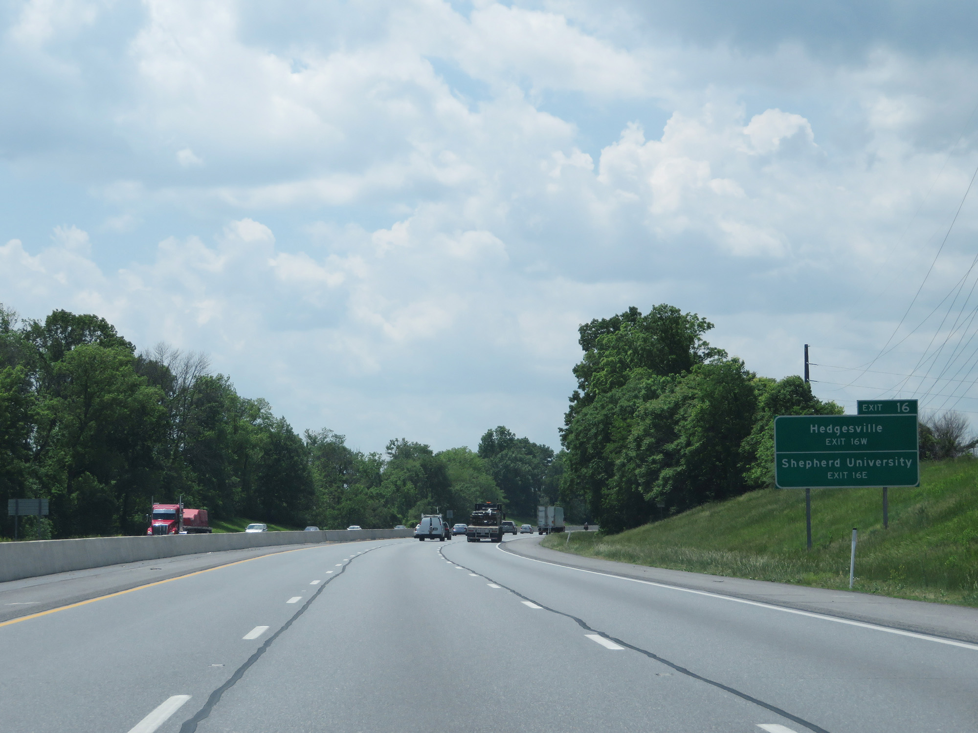 Take Exit 16W to Hedgesville and Exit 16E to Shepherd University. (Photo taken 5/19/17). |