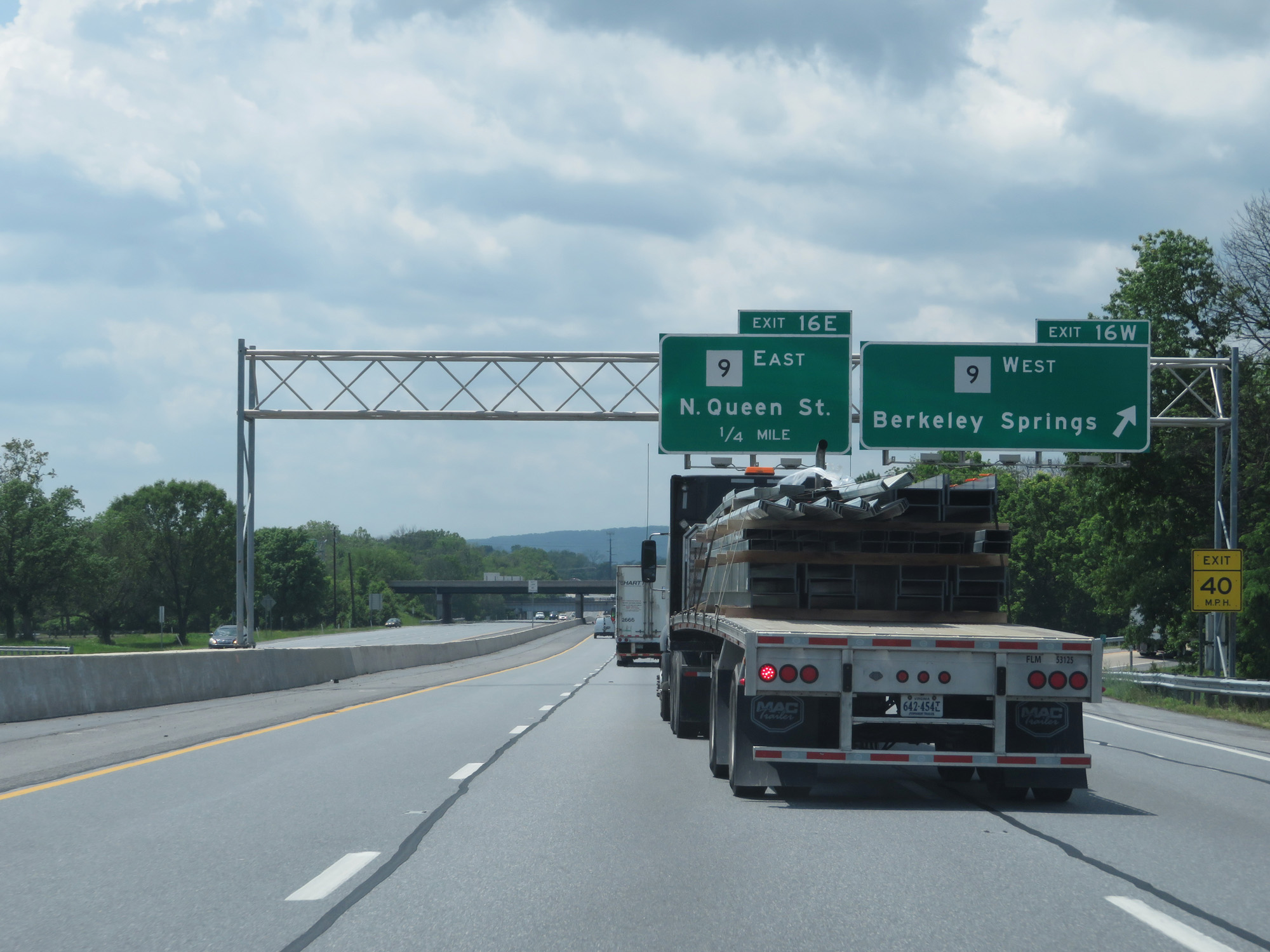 Interstate 81 South at Exit 16W: WV 9 West - Berkeley Springs (Photo taken 5/19/17). |