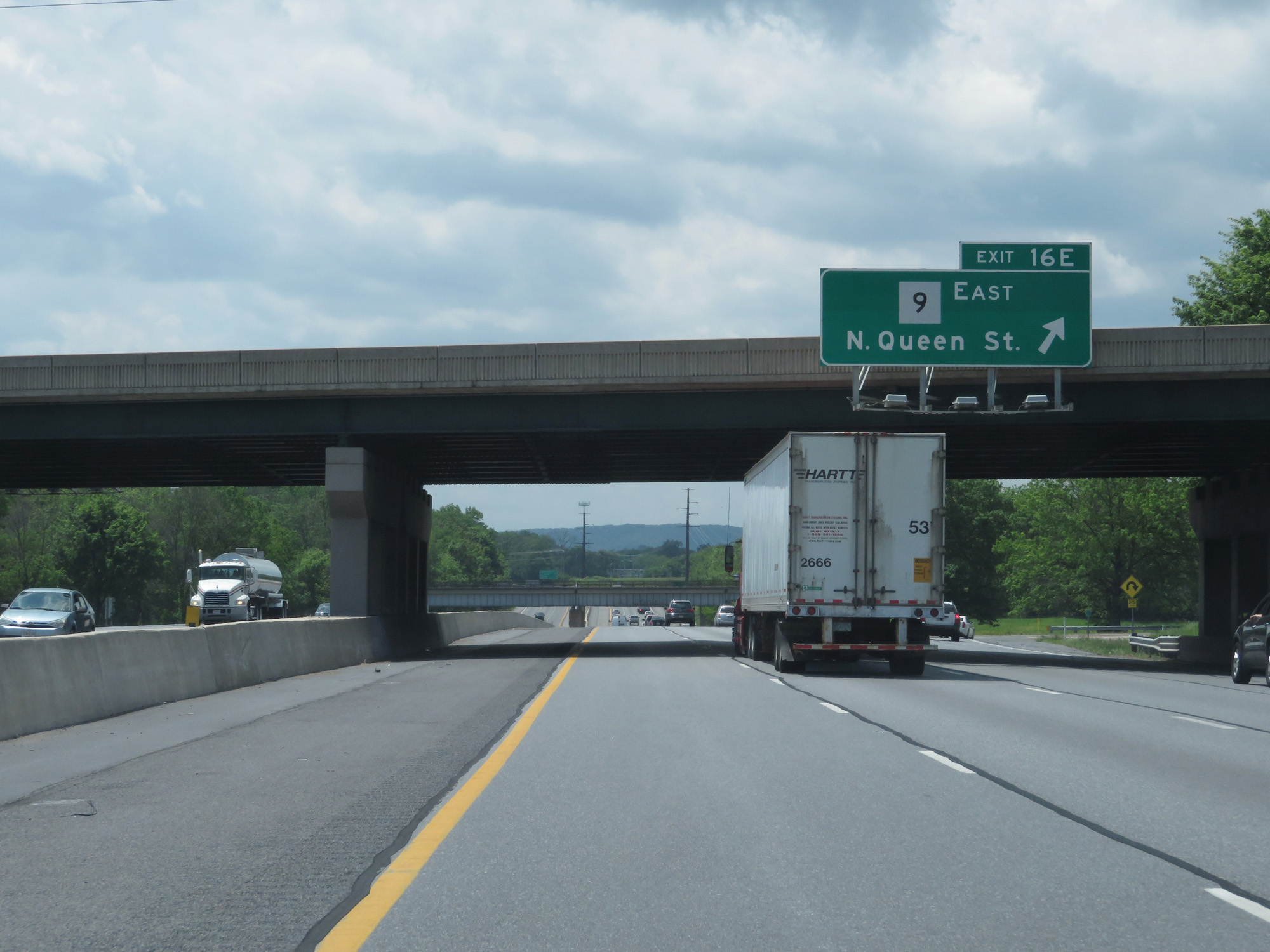 Interstate 81 South at Exit 16E: WV 9 East - N Queen St (Photo taken 5/19/17). |