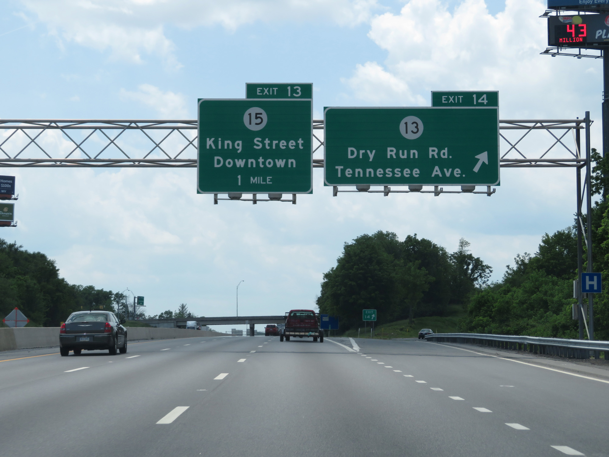 Interstate 81 South at Exit 14: CR 13 - Dry Run Rd / Tennessee Ave (Photo taken 5/19/17). |
