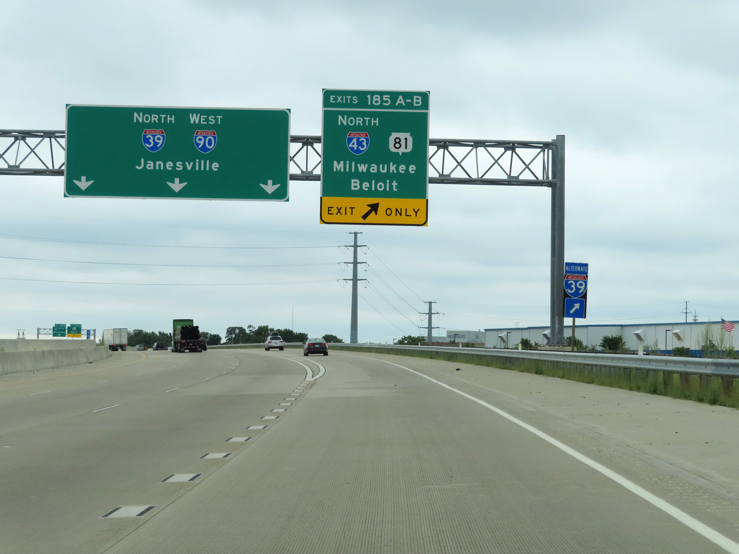 Interstate 43 North / Interstate 41 South / Interstate 894 East at Exits 8A-B: WI 36 - Loomis Rd (Photo taken 8/14/22). |