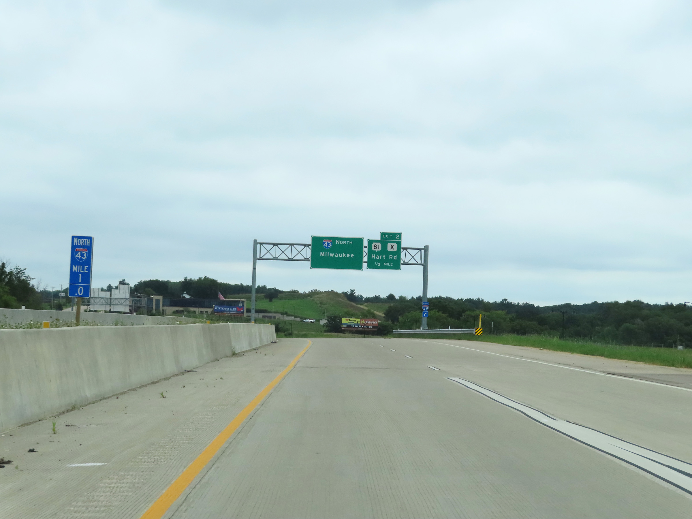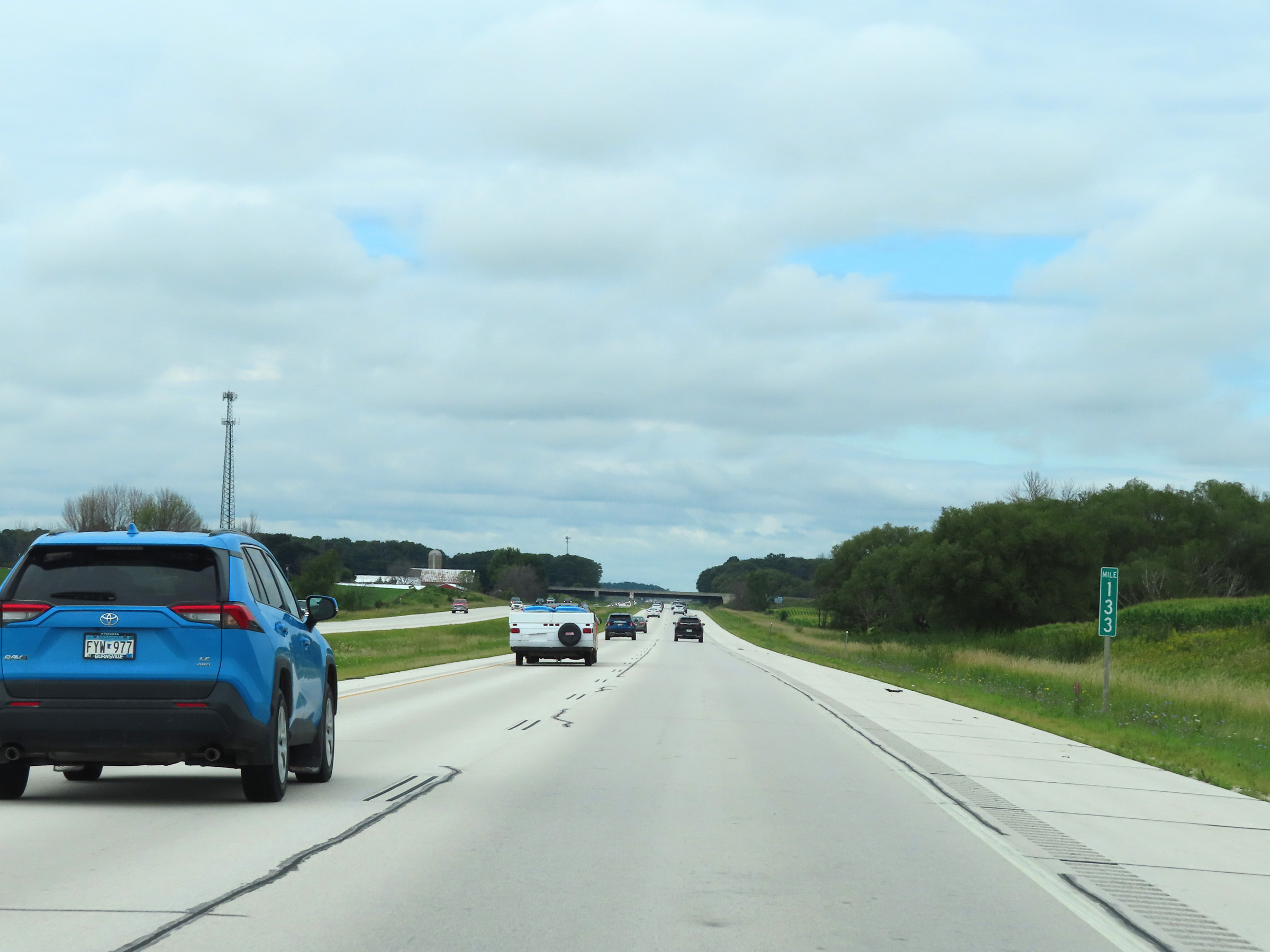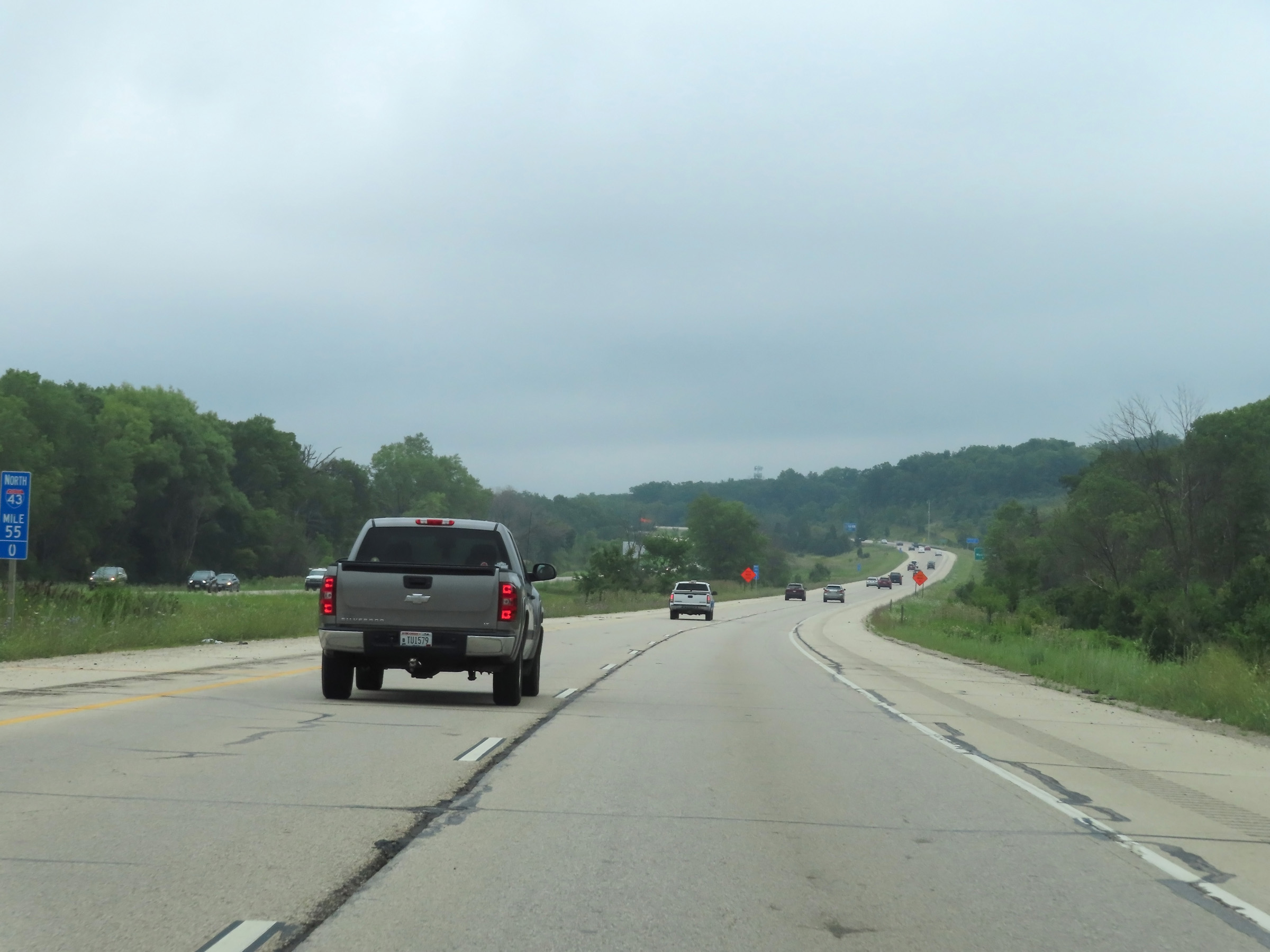 View on Interstate 43 North / Interstate 94 West at mile marker 313. (Photo taken 8/14/22). |