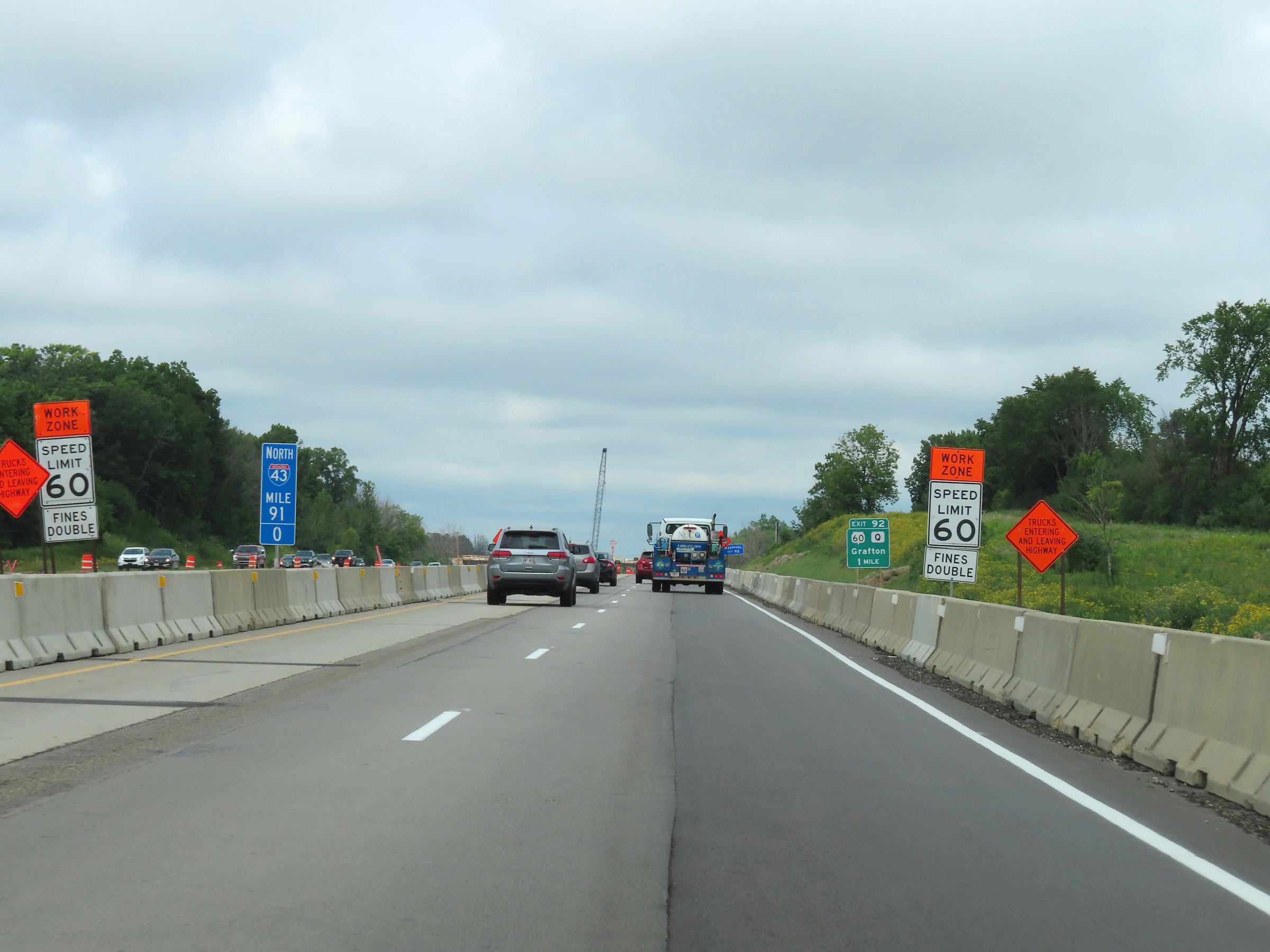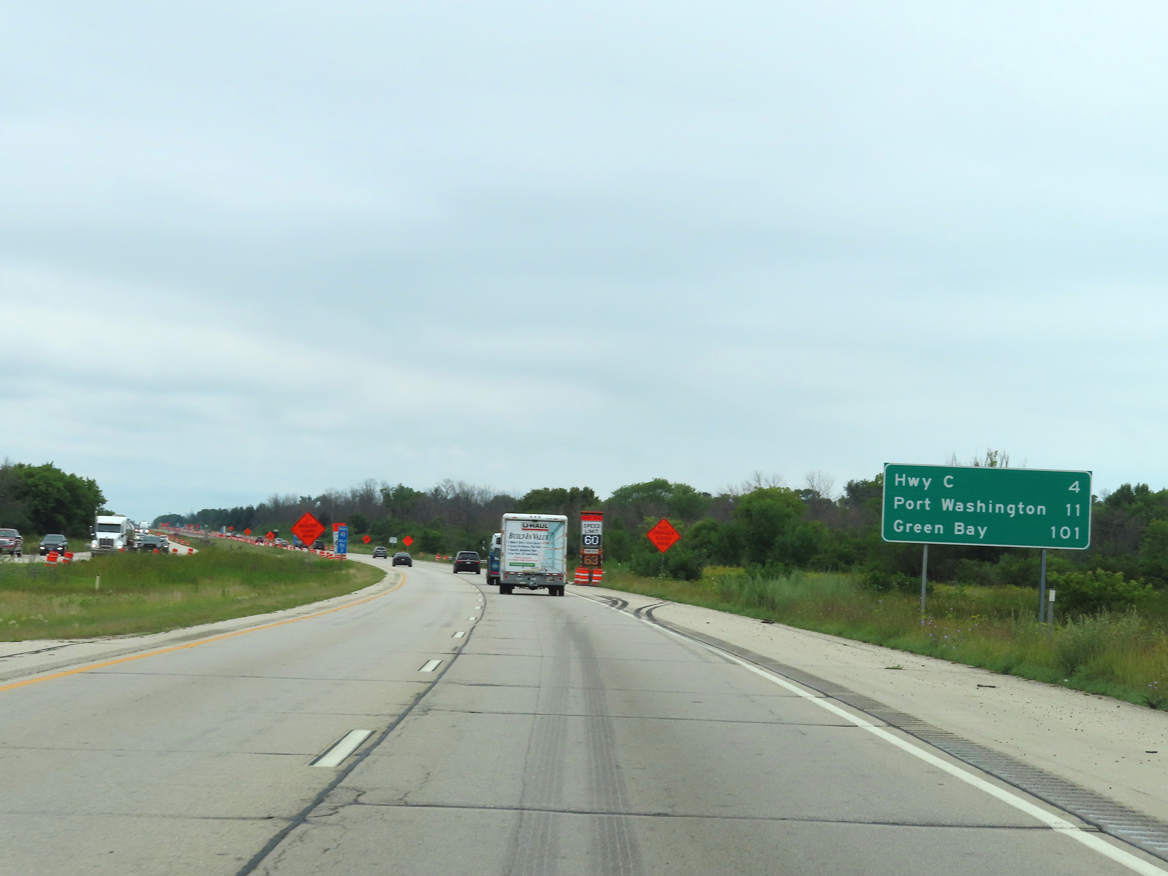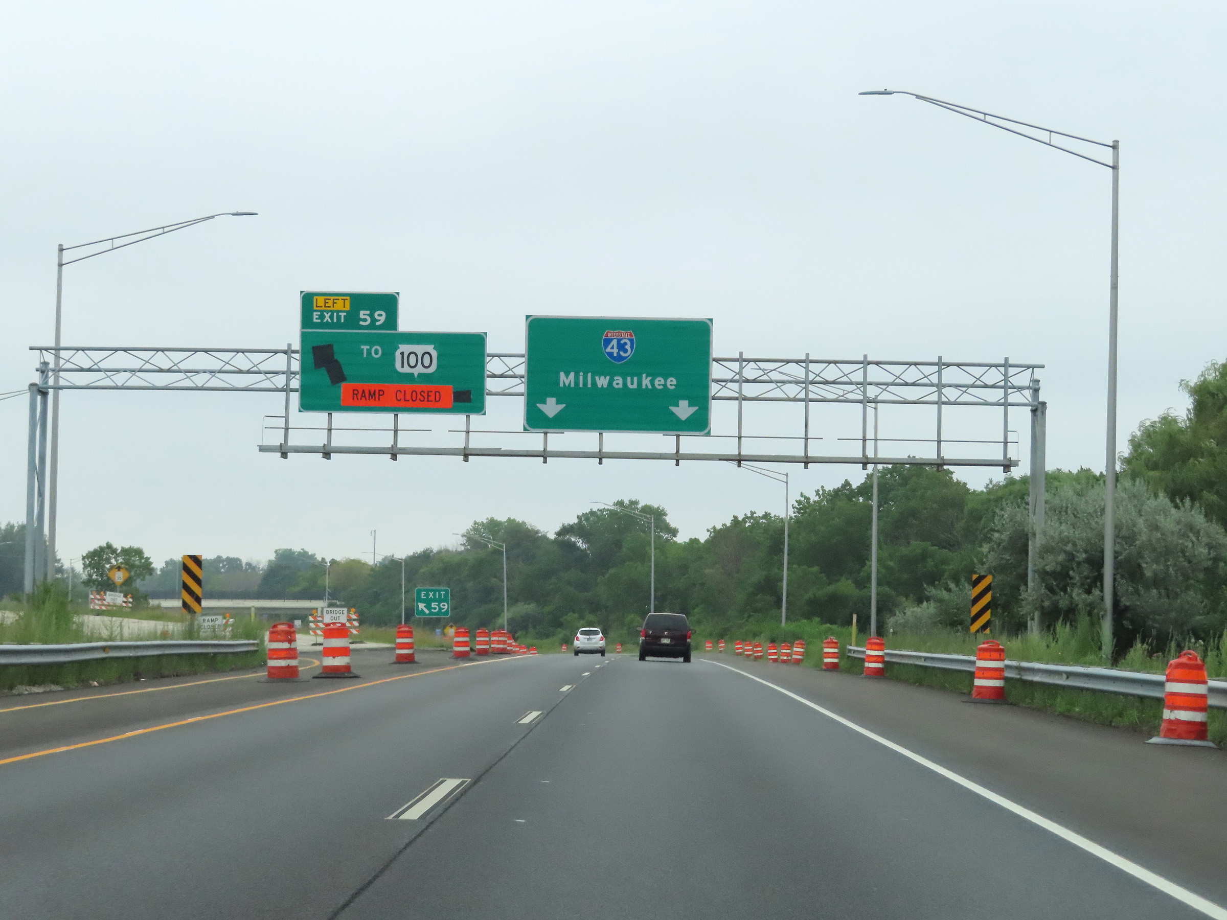 View on Interstate 43 North / Interstate 94 West at mile marker 314.4. (Photo taken 8/14/22). |