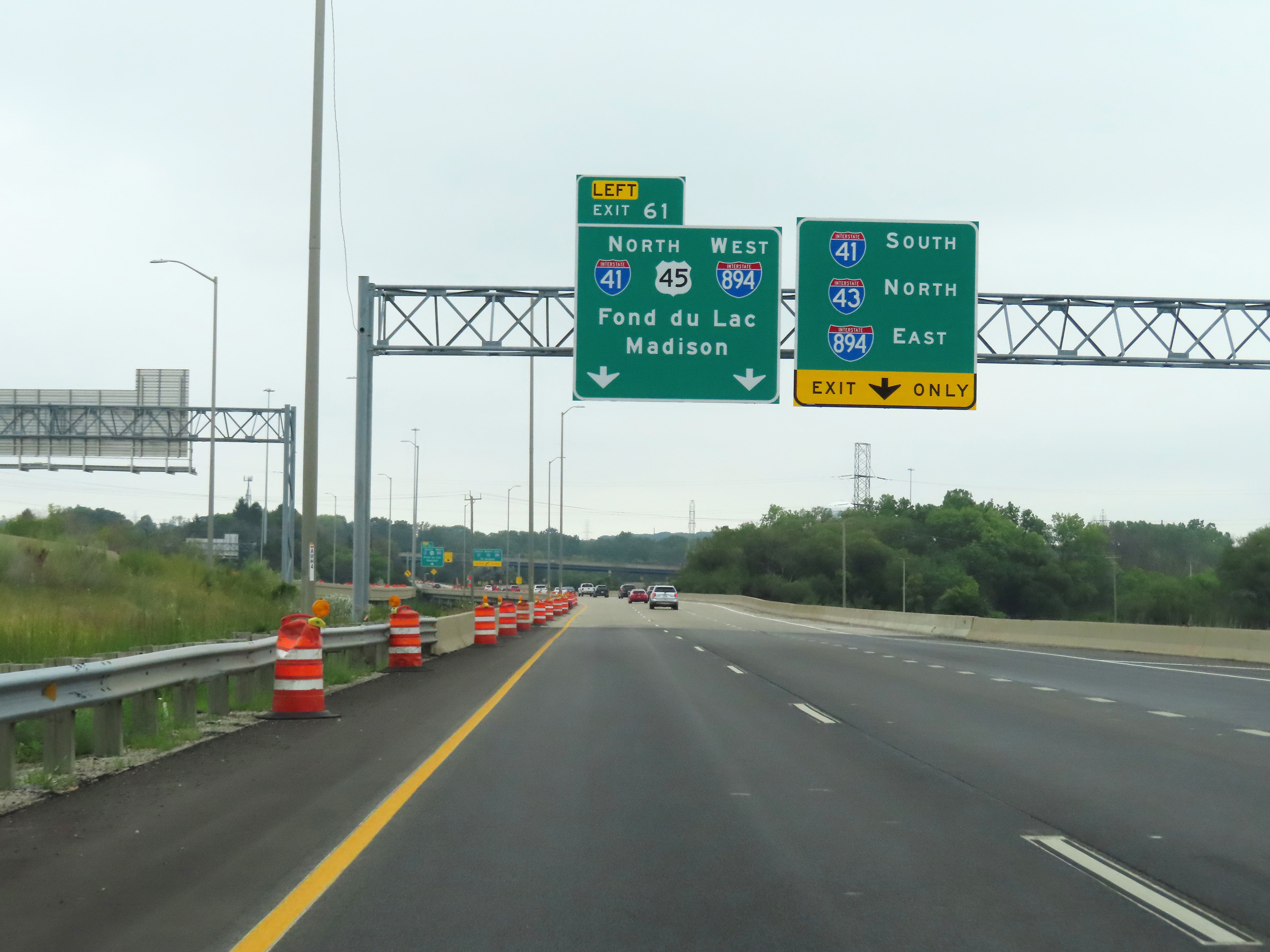 Interstate 43 North at Exit 61: Interstate 41 North / Interstate 894 West / US 45 North - Fond du Lac / Madison (Photo taken 8/14/22). |