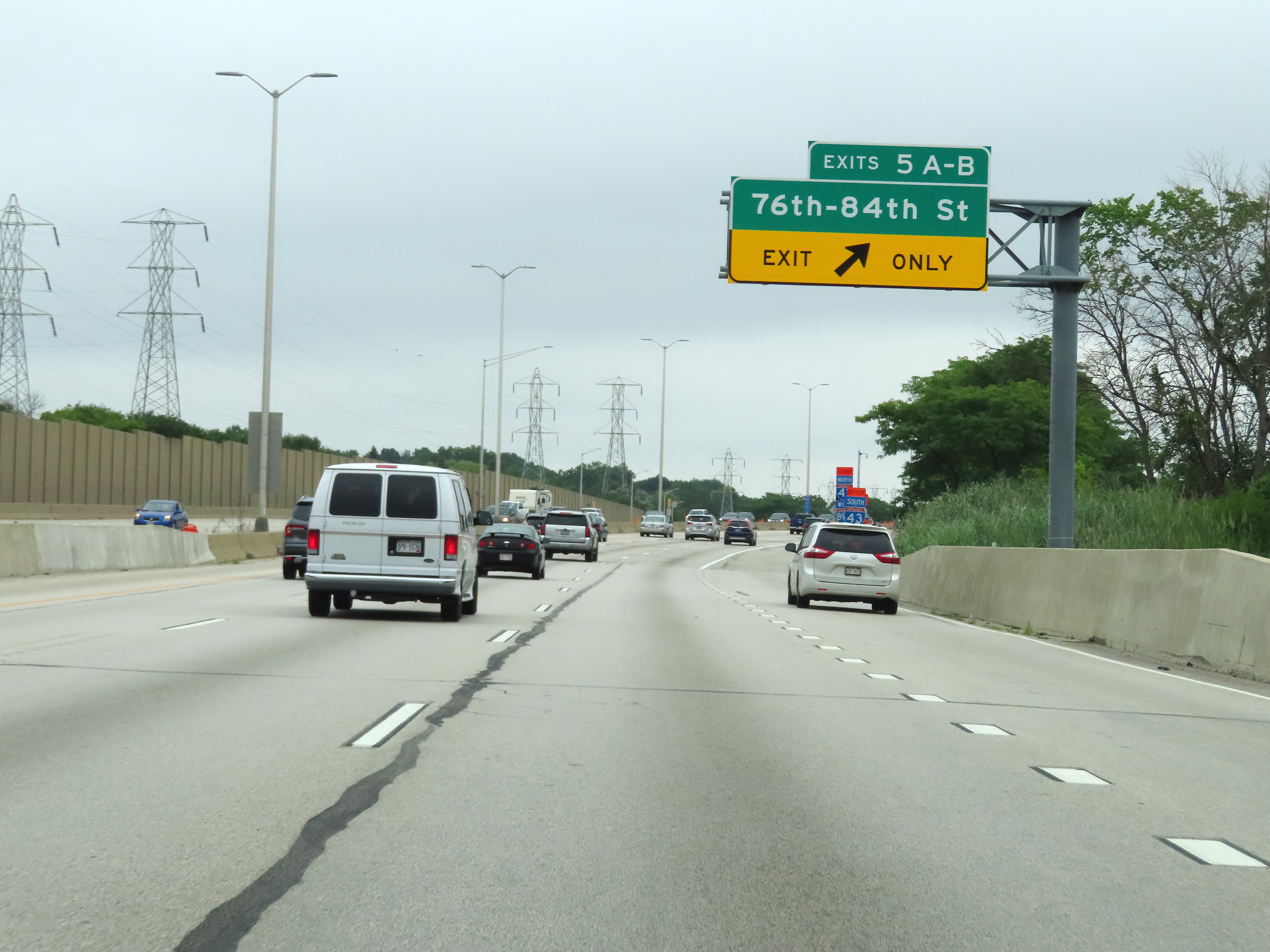 Interstate 43 North / Interstate 41 South / Interstate 894 East at Exits 5A-B: 76th St / 84th St (Photo taken 8/14/22). |