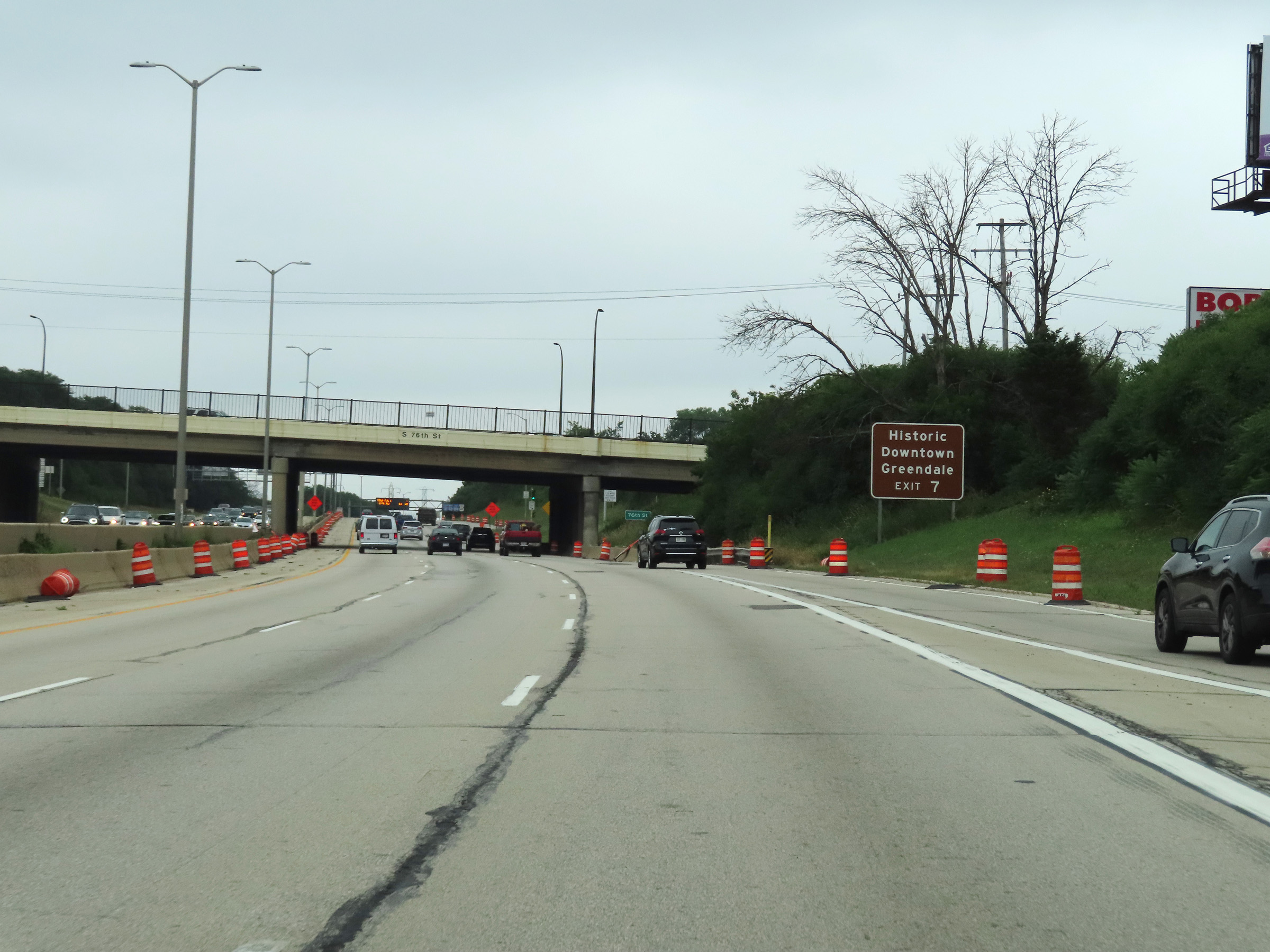 Interstate 43 North / Interstate 41 South / Interstate 894 East at Exit 7: 60th St (Photo taken 8/14/22). |