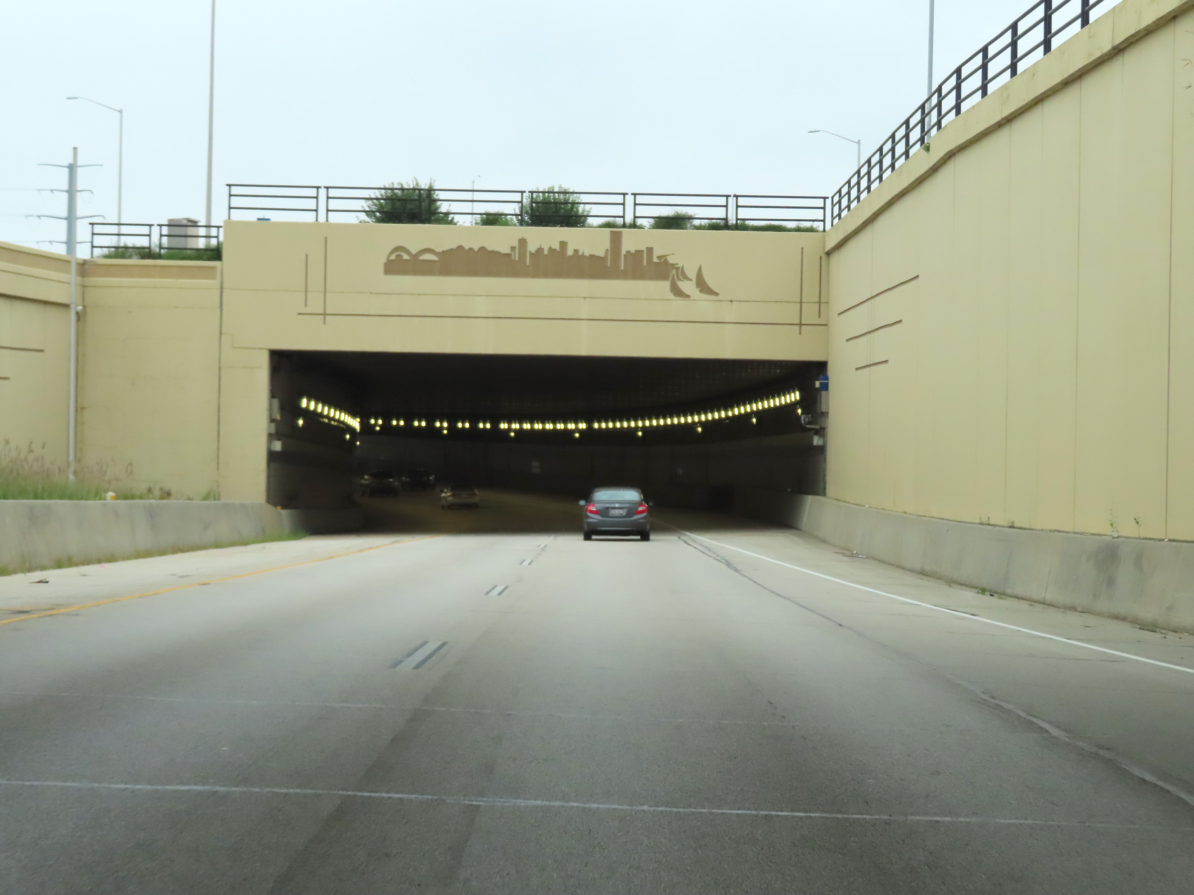 There is a brief period of daylight between the two tunnels on Interstate 43 North. The next tunnel will take I-43 North under Interstate 94 West, which it will join not far from now. (Photo taken 8/14/22). |