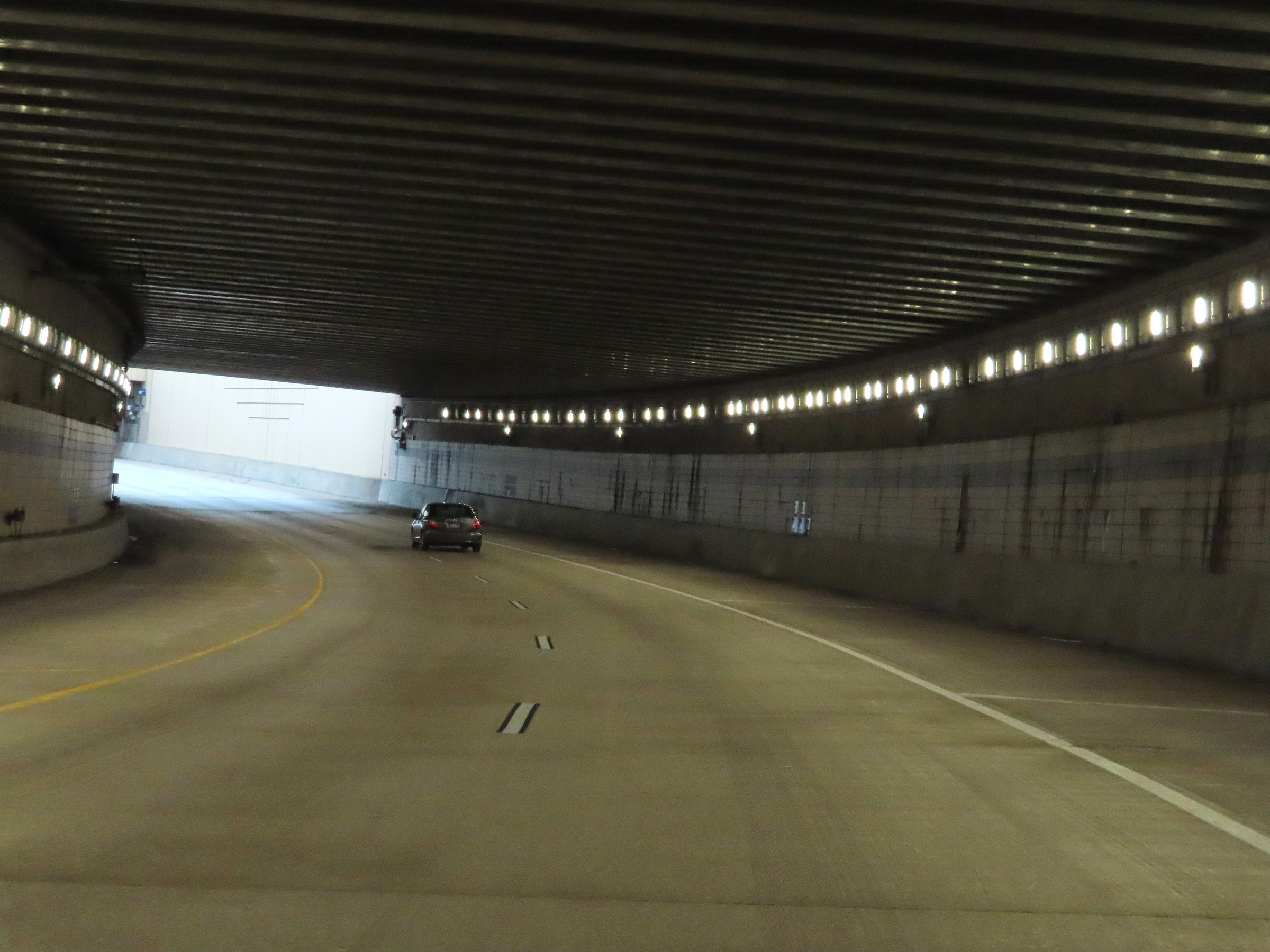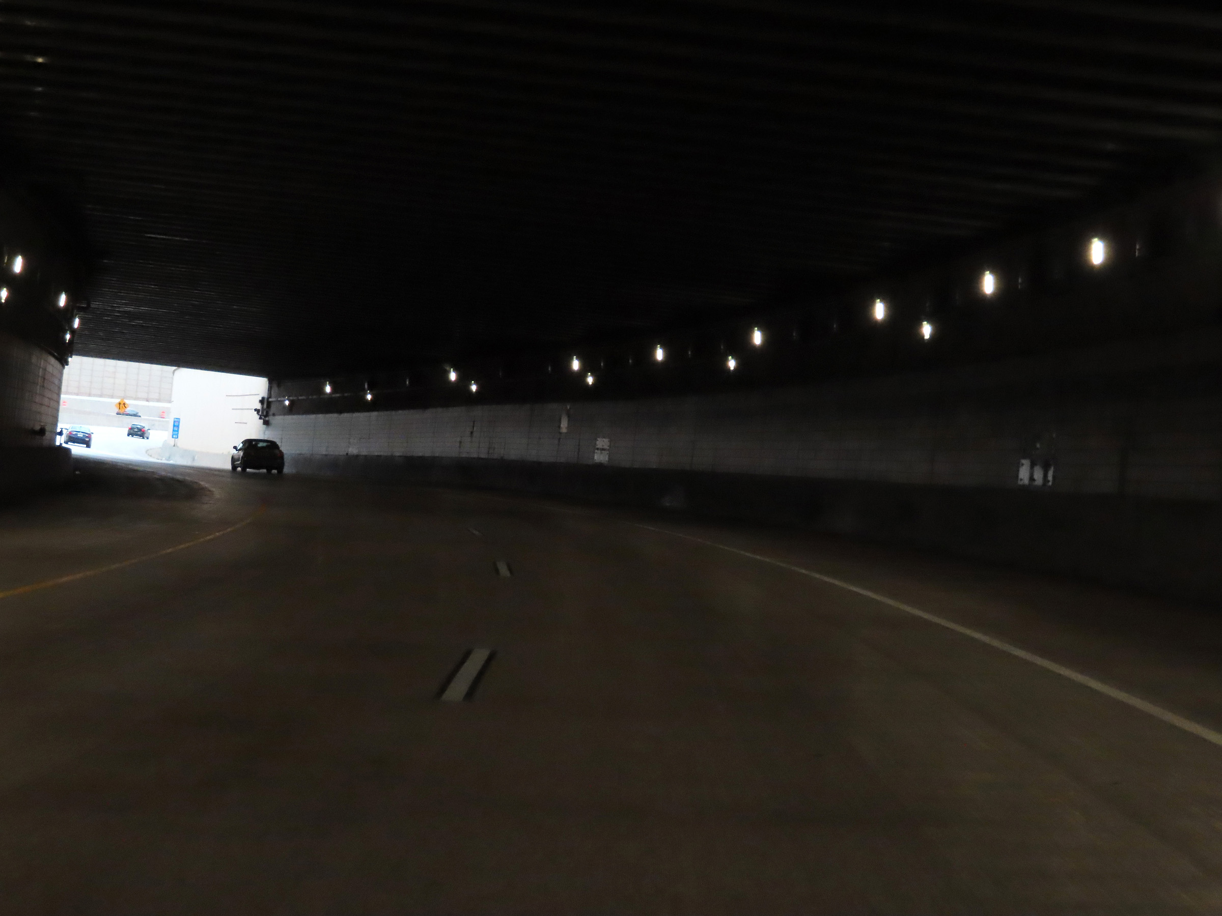 View inside the first tunnel on Interstate 43 North as it passes under Interstate 41 South / Interstate 94 East and curves to the north. (Photo taken 8/14/22). |