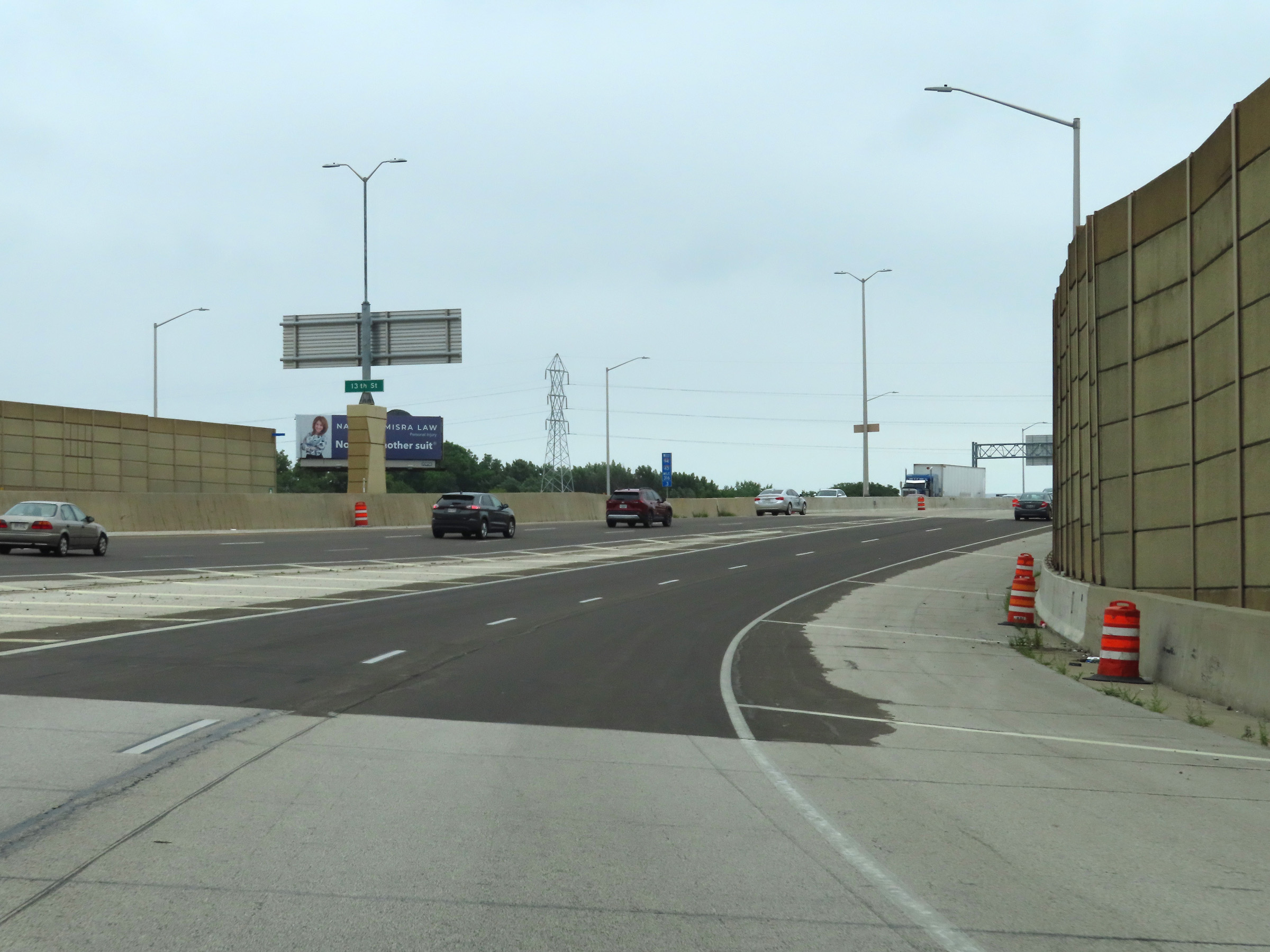 Interstate 43 North as it leaves the second tunnel and prepares to combine with westbound lanes of Interstate 94, which it just tunneled under. (Photo taken 8/14/22). |