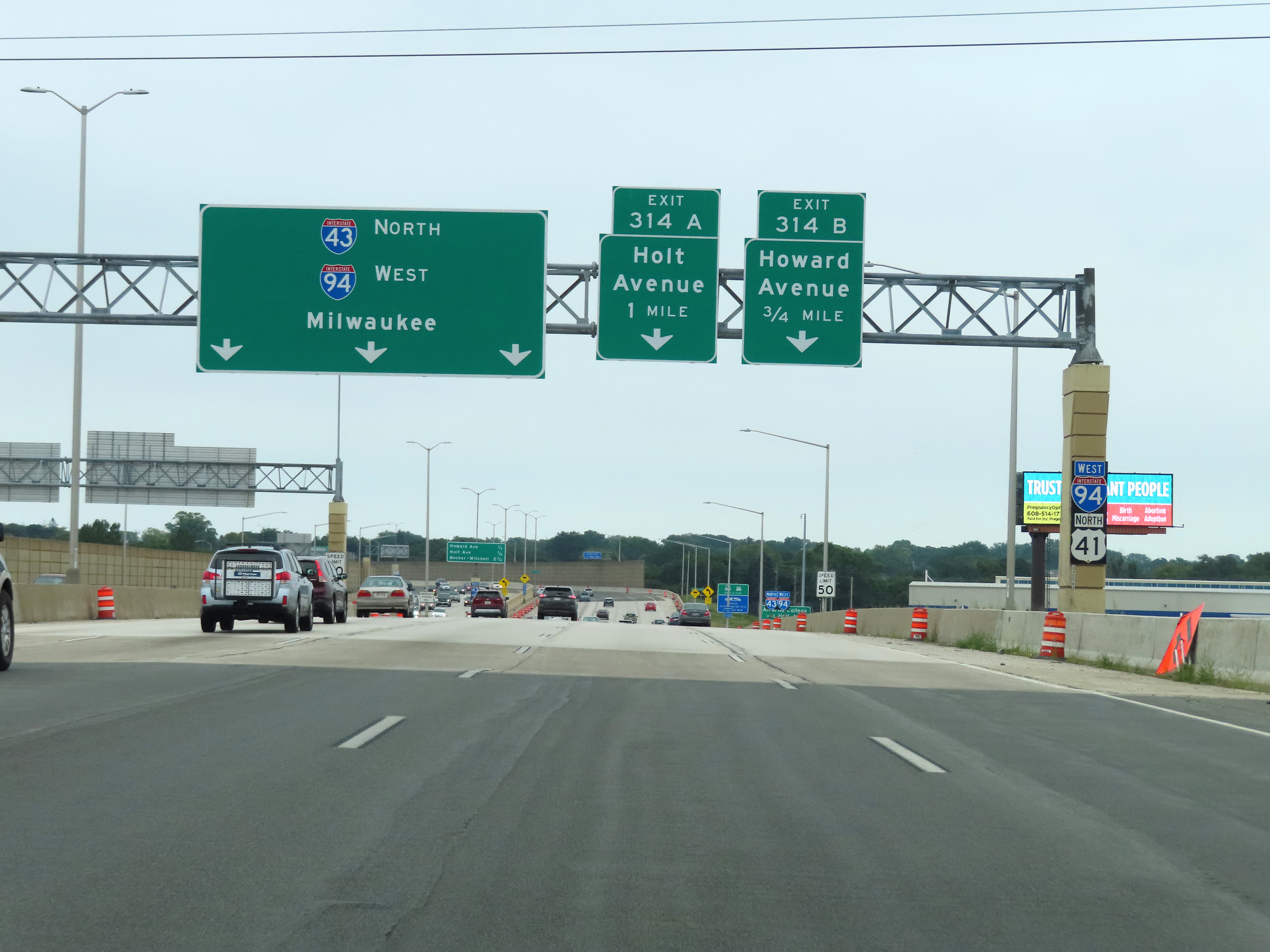 Interstate 43 North / Interstate 94 West at Exit 314B: Howard Avenue (Photo taken 8/14/22). |