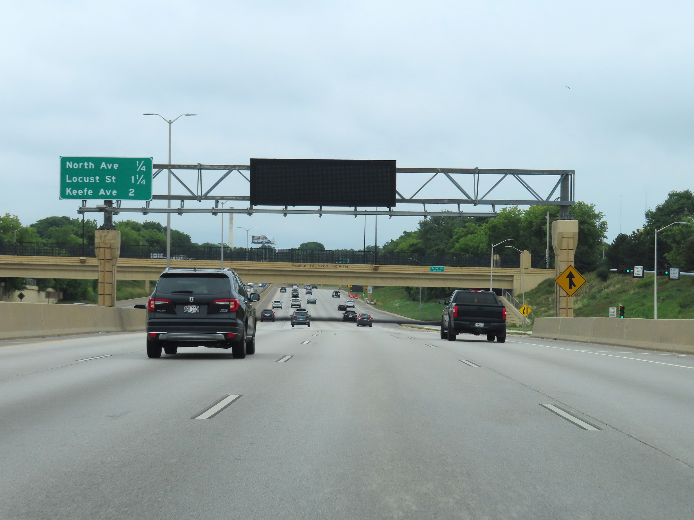 Follow Interstate 43 North to Exit 72A to the Performing Arts Center and Public Museum. Stay on I-43 North to Exit 73A to the Milwaukee School of Engineering. (Photo taken 8/14/22). |