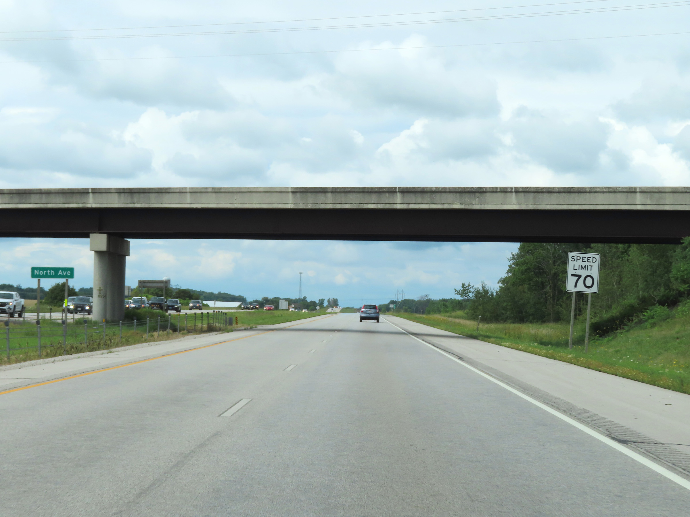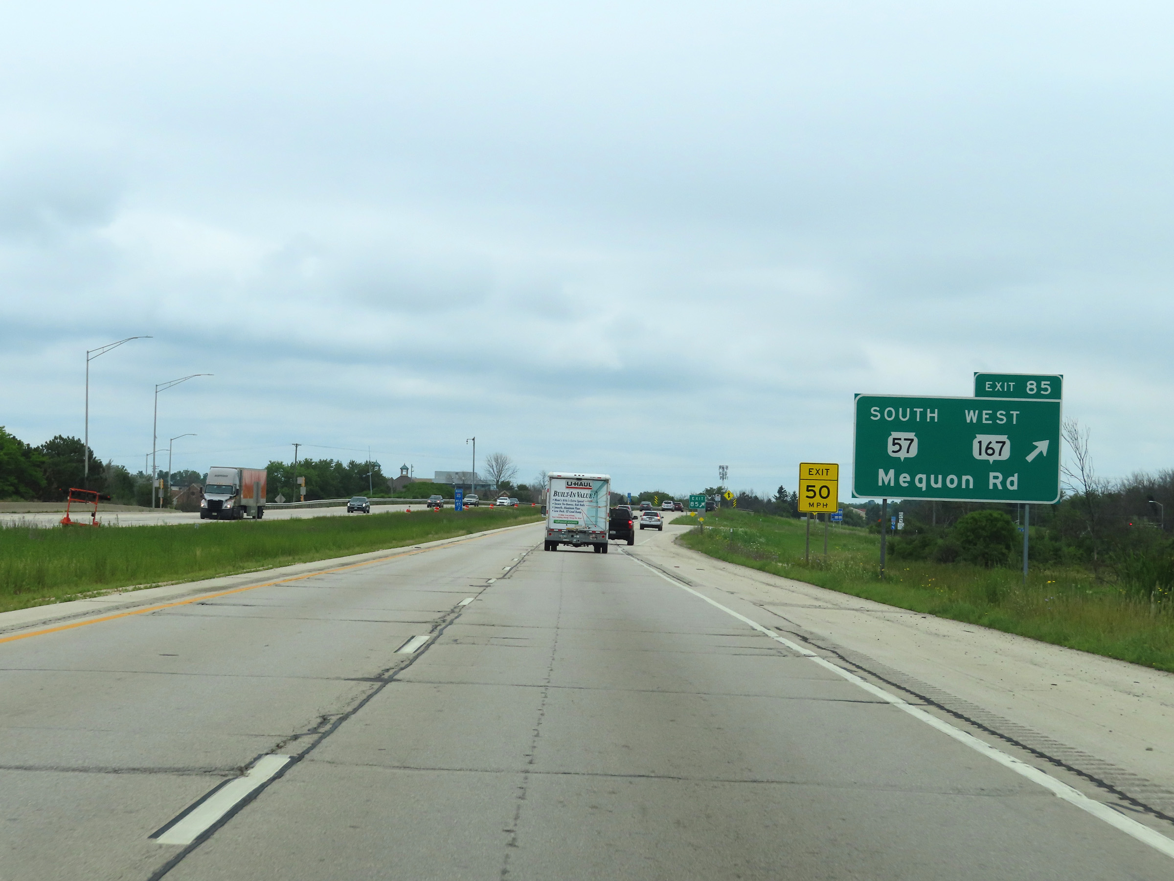 Interstate 43 North as it enters Milwaukee County. Upon doing so, the speed limit decreases to 55 mph. (Photo taken 8/14/22). |