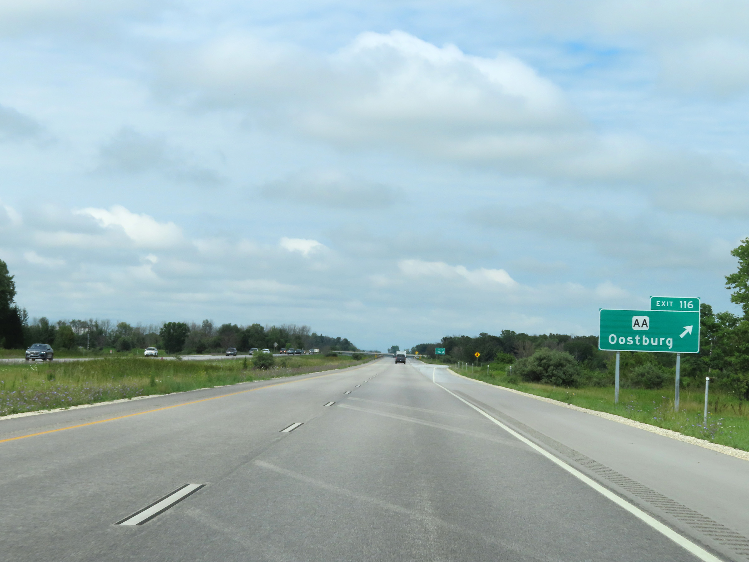 Interstate 43 North at Exit 57: Hwy O - Moorland Rd (Photo taken 8/14/22). |