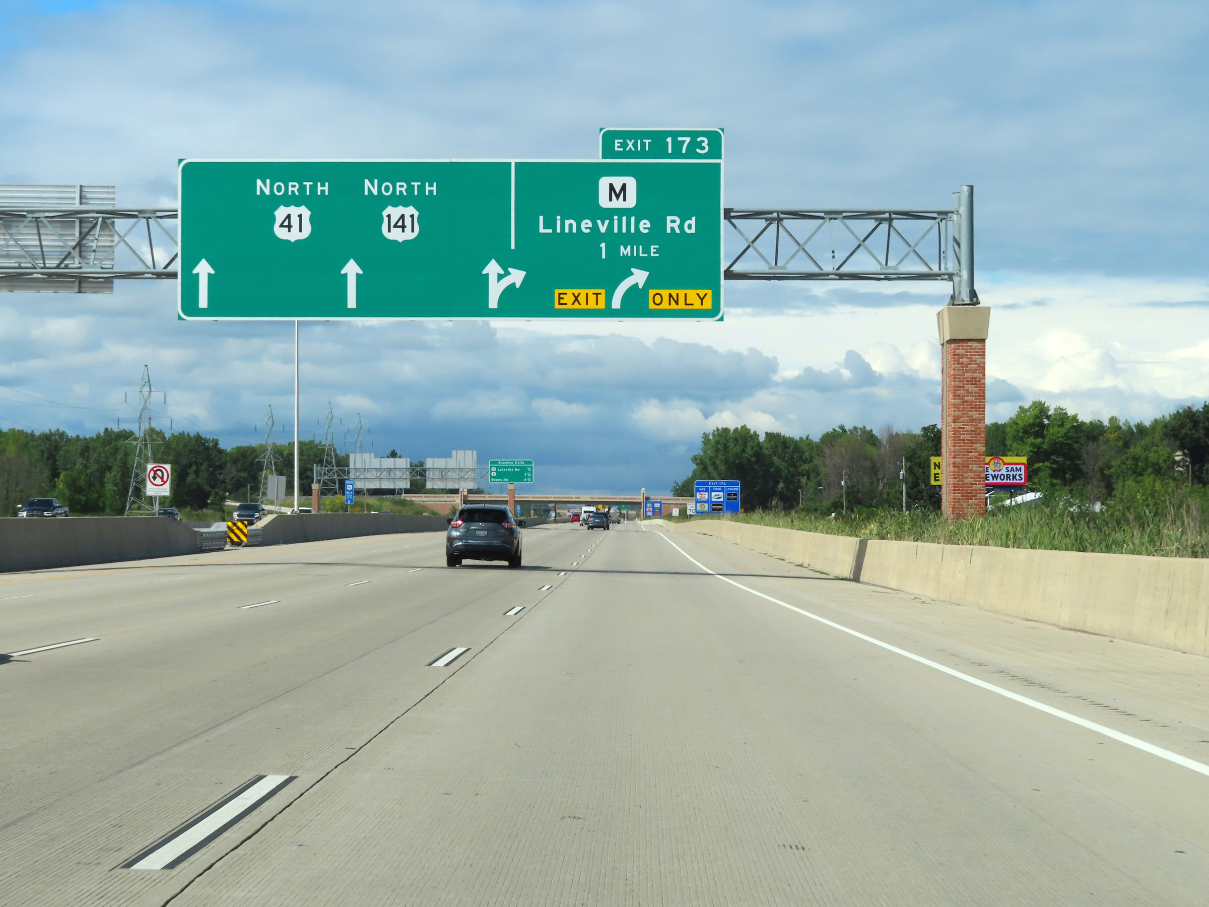 US 41 traffic should follow Interstate 41, since they run concurrently. (Photo taken 8/14/22). |
